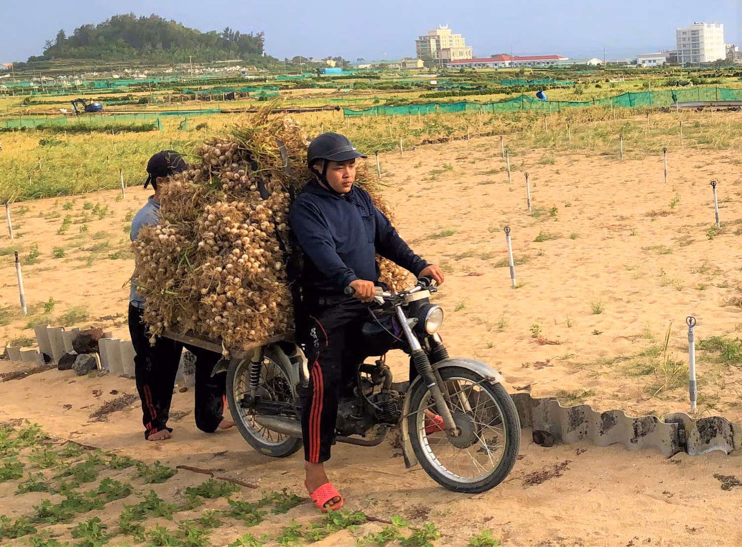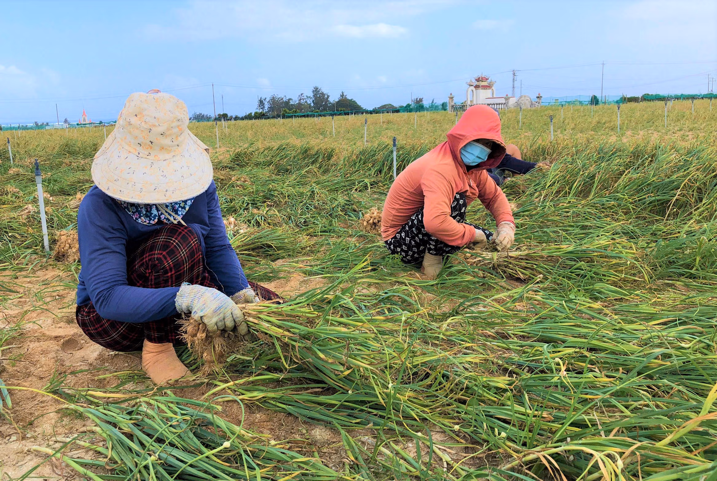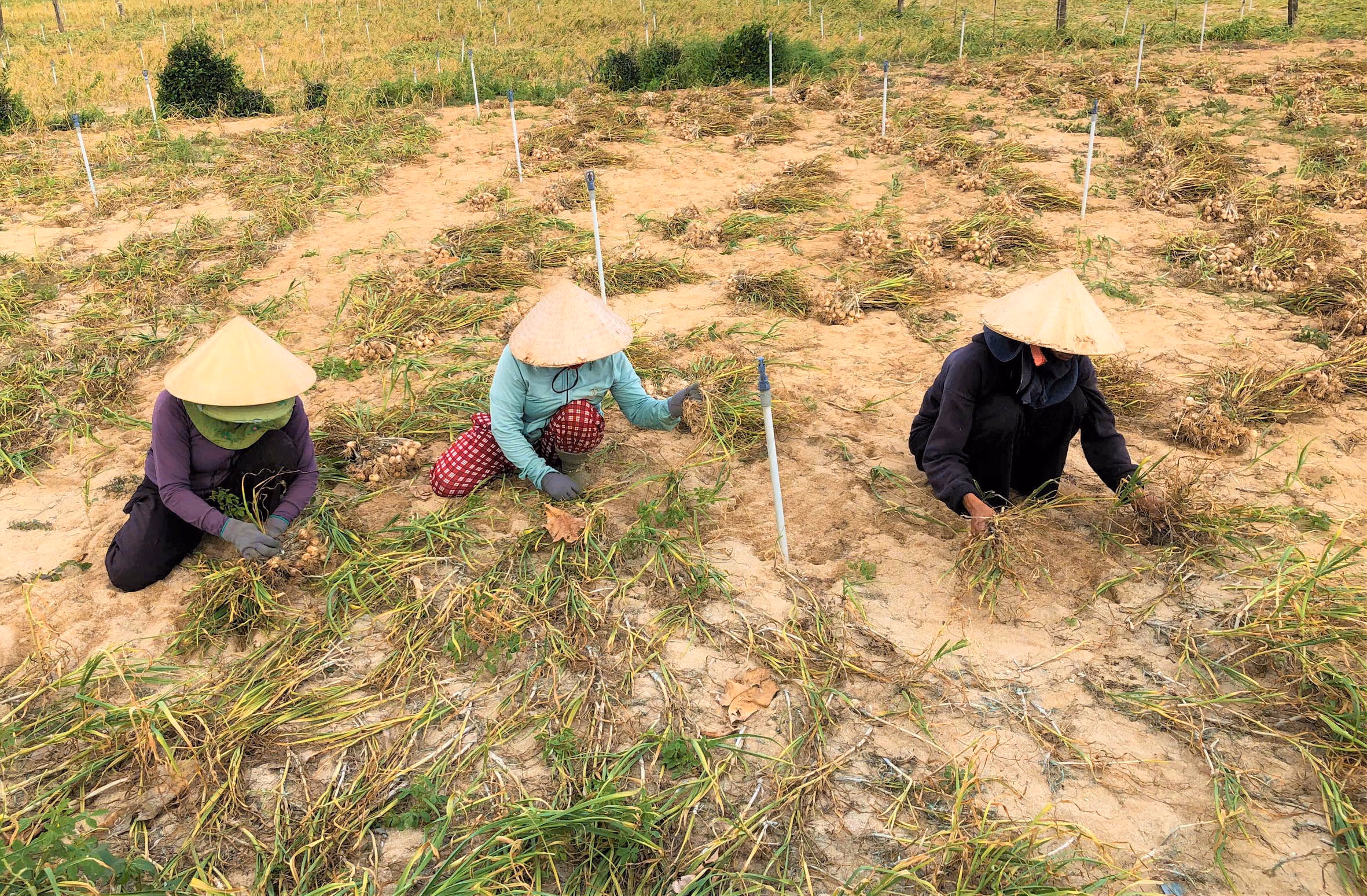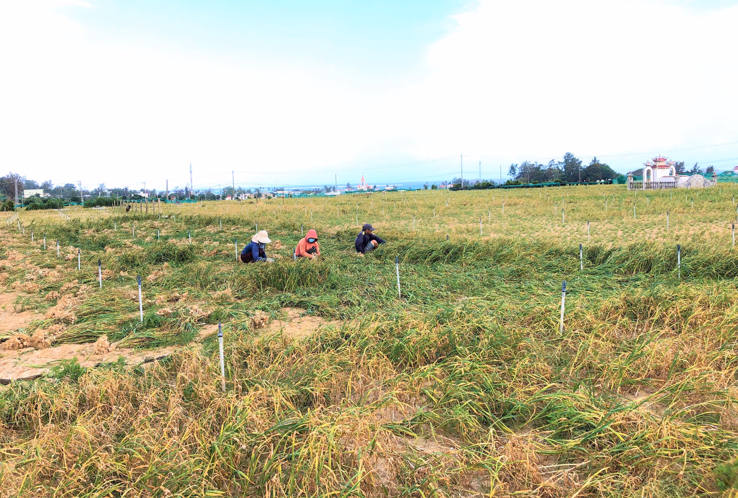 Trên những cánh đồng cát trắng ở đặc khu Lý Sơn, nông dân tất bật nhổ tỏi, tranh thủ thời tiết nắng ráo để thu hoạch. Dù đầu vụ cây phát triển xanh tốt, nhưng về sau nhiều ruộng tỏi bất ngờ khô héo, chết đứng, gây thiệt hại đáng kể, thậm chí có nơi mất trắng. Nguyên nhân hiện vẫn chưa được xác định rõ, có thể do thời tiết bất lợi, sâu bệnh hoặc chất lượng vật tư nông nghiệp.