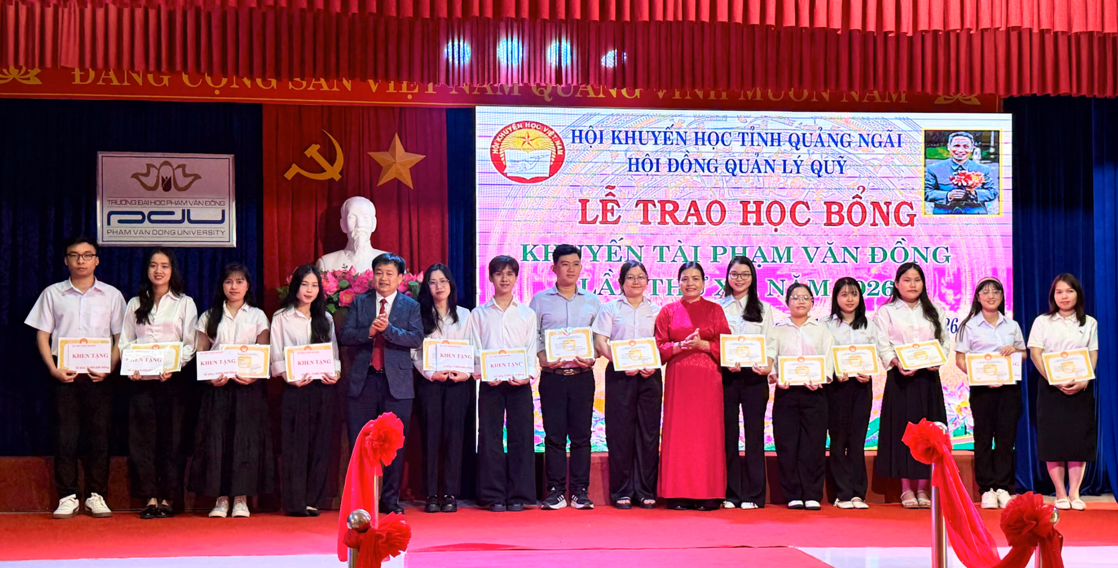 Ngày 11/2, Hội Khuyến học tỉnh Quảng Ngãi tổ chức lễ trao Học bổng khuyến tài Phạm Văn Đồng lần thứ XX, vinh danh và hỗ trợ 165 sinh viên đạt thành tích học tập tiêu biểu tại các trường đại học trên cả nước.