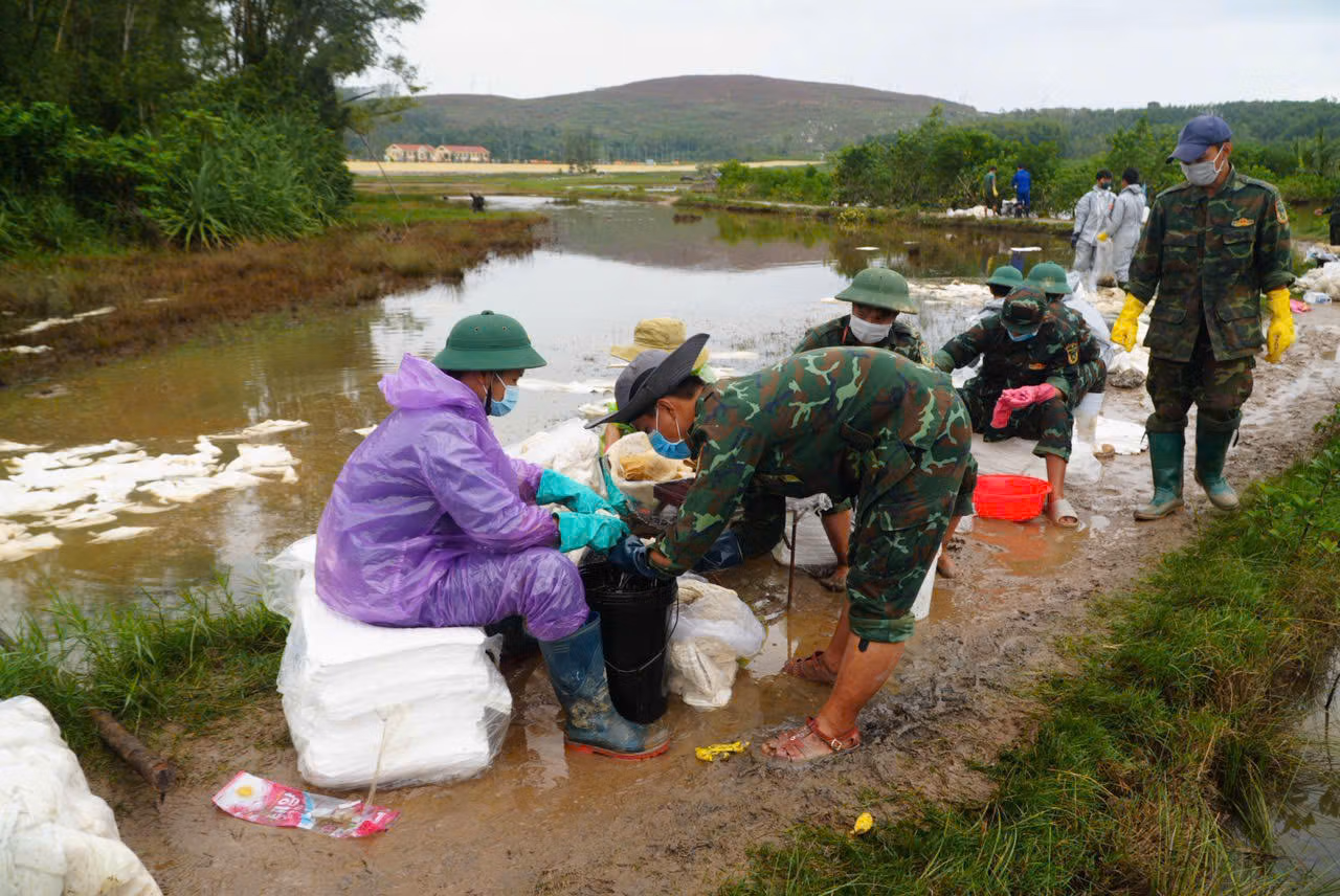 “Với trách nhiệm của chủ đầu tư và danh dự của người lính, chúng tôi cam kết xử lý triệt để sự cố tràn dầu tại Quảng Ngãi, bảo đảm môi trường và đời sống của người dân”, Đại tá Dương Ngọc Tuyến nói.