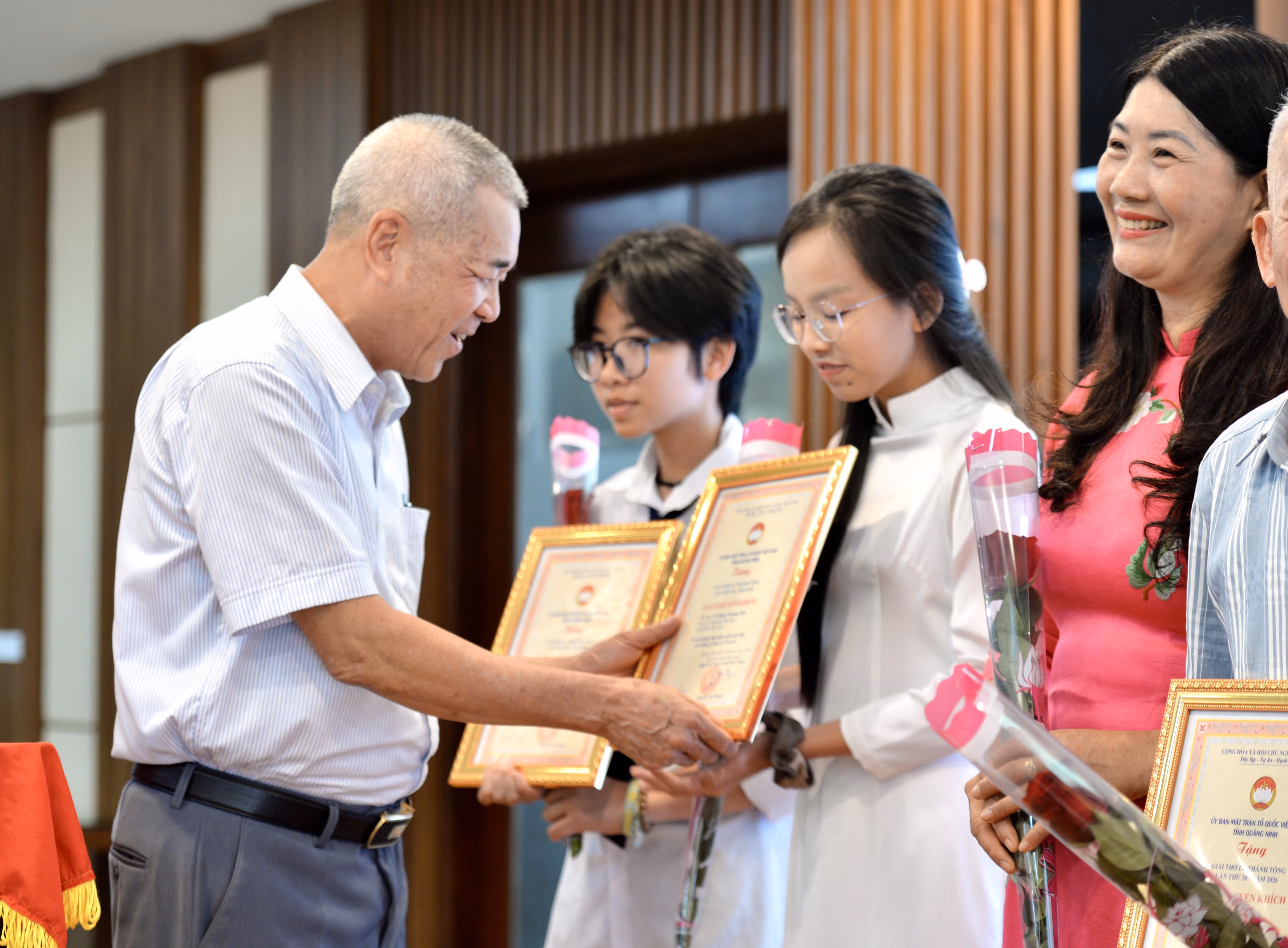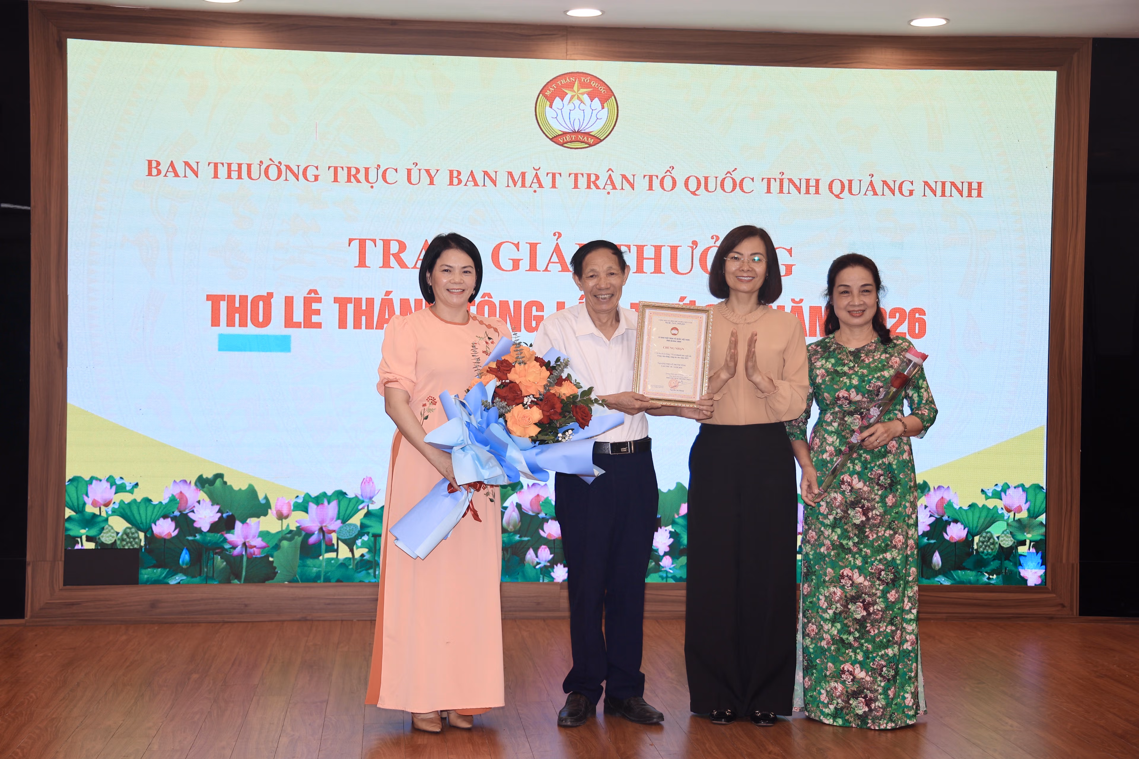 Nhân dịp này, Ủy ban MTTQ Việt Nam tỉnh Quảng Ninh cũng khen thưởng tác giả cao tuổi nhất và tác giả trẻ nhất tham gia giải thơ Lê Thánh Tông lần thứ 38 năm 2026 và CLB Thơ Bích Động đã có thành tích xuất sắc trong vận động, sáng tác thơ năm 2025.