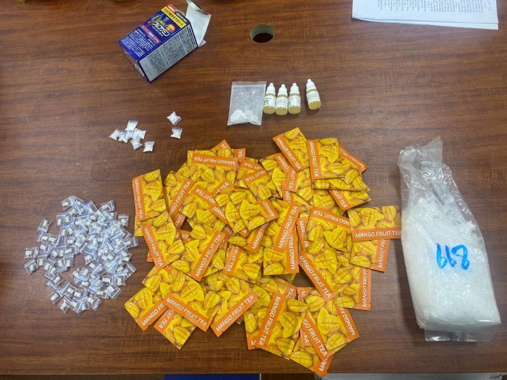 Vật chứng thu giữ gồm 86 viên ma túy thuốc lắc, 4 lọ ma túy ketamine dạng lỏng, hơn 104 túi nilon ma túy nước vui và 853,861 gam ma túy ketamine.