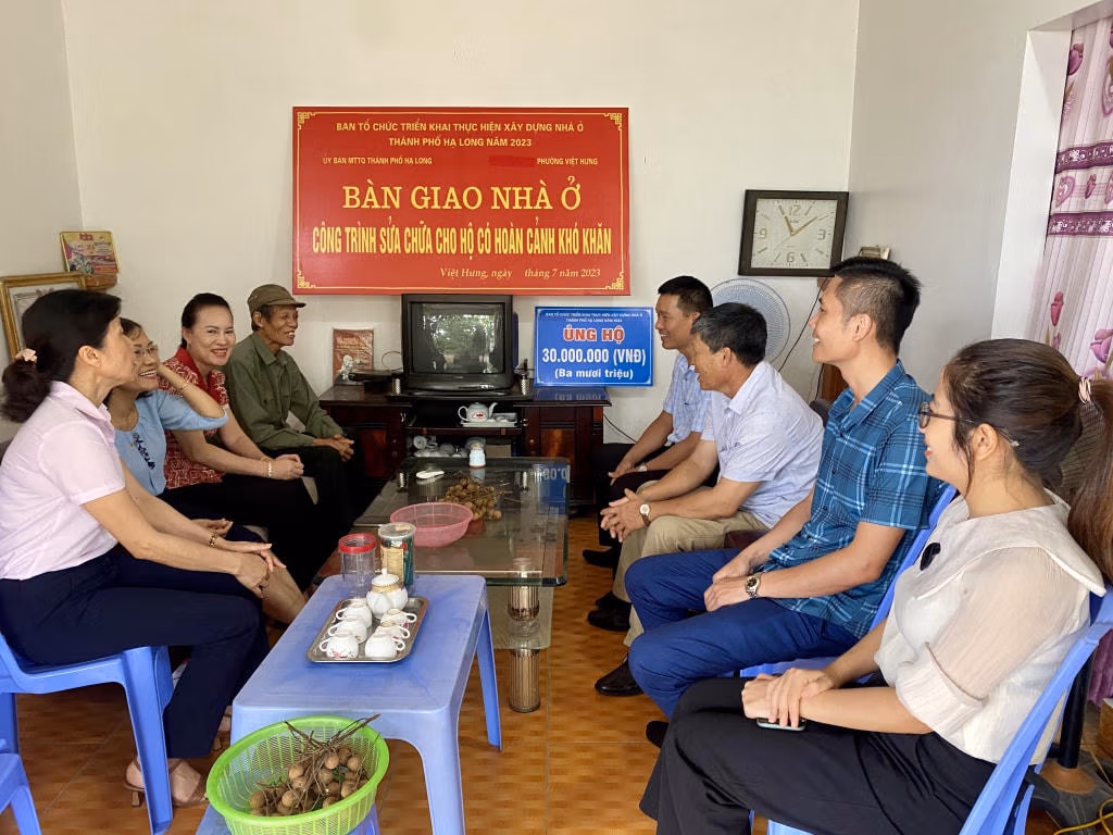 Bên cạnh đó, MTTQ các cấp của thành phố đã phối hợp triển khai, rà soát và tuyên truyền, huy động nguồn lực hỗ trợ xây mới, sửa chữa nhà ở cho 109 hộ có hoàn cảnh khó khăn trên địa bàn với tổng số tiền 6,6 tỷ đồng. Qua đó, góp phần hoàn thành Chương trình xóa nhà tạm, nhà dột nát trên địa bàn tỉnh năm 2023. Với thành tích trong việc thực hiện Chương trình xóa nhà tạm, nhà dột nát năm 2023, Ủy ban MTTQ TP Hạ Long đã nhận được Bằng khen của UBND tỉnh Quảng Ninh; Uỷ ban Trung ương MTTQ Việt Nam trao Bằng ghi công, công nhận địa phương hoàn thành việc xây dựng “Nhà Đại đoàn kết”, xóa nhà dột nát cho hộ nghèo.