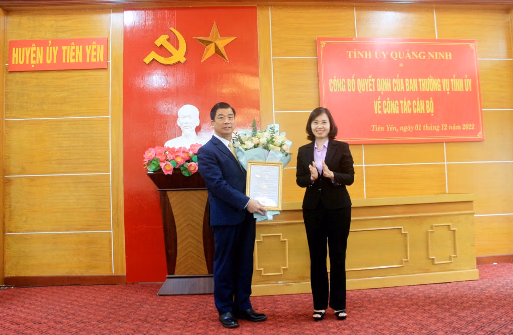 Sáng 1/12, Phó Bí thư Tỉnh ủy Quảng Ninh Trịnh Thị Minh Thanh đã trao quyết định của Ban Thường vụ Tỉnh ủy về điều động cán bộ tại huyện Bình Liêu và Tiên Yên.