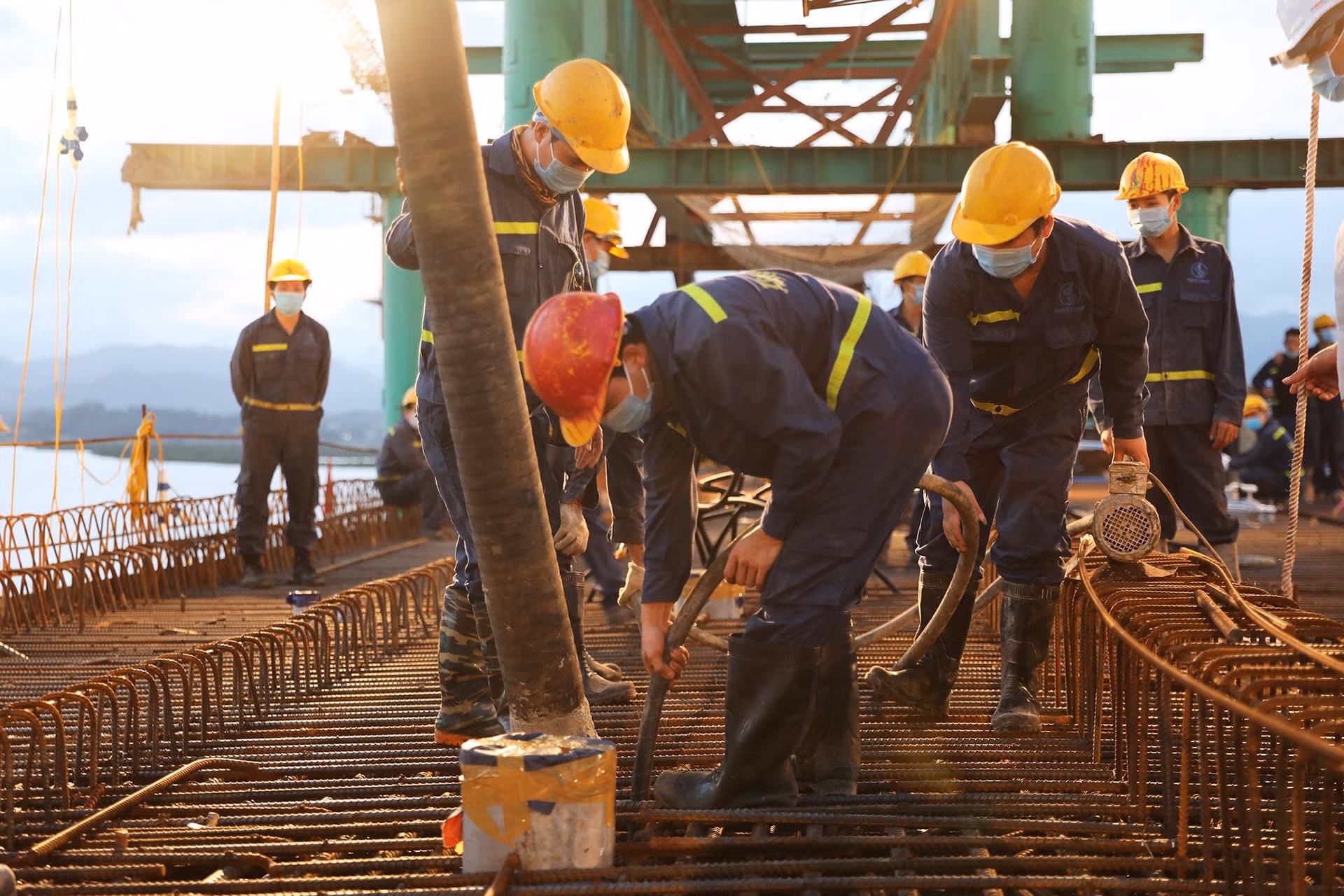 Đồng thời, ngay sau khi hợp long xong nhịp chính, nhịp đầu tiên dự án, cần triển khai ngay các phương án thi công vòm ống thép và hệ thống cáp treo, hoàn thành lắp dựng xong vòm thép của cầu chính trong tháng 7, thi công xong dầm chính trong tháng 8, các vòm thép khác trong tháng 10.