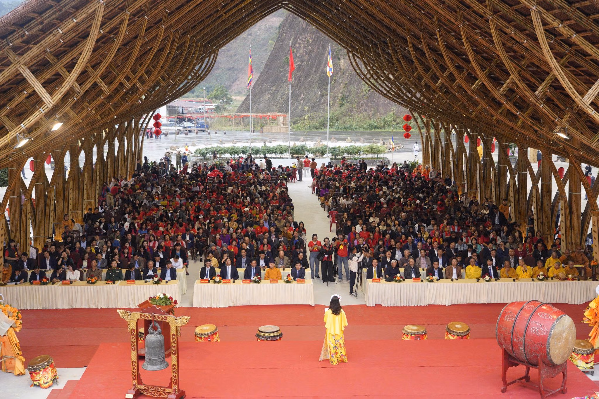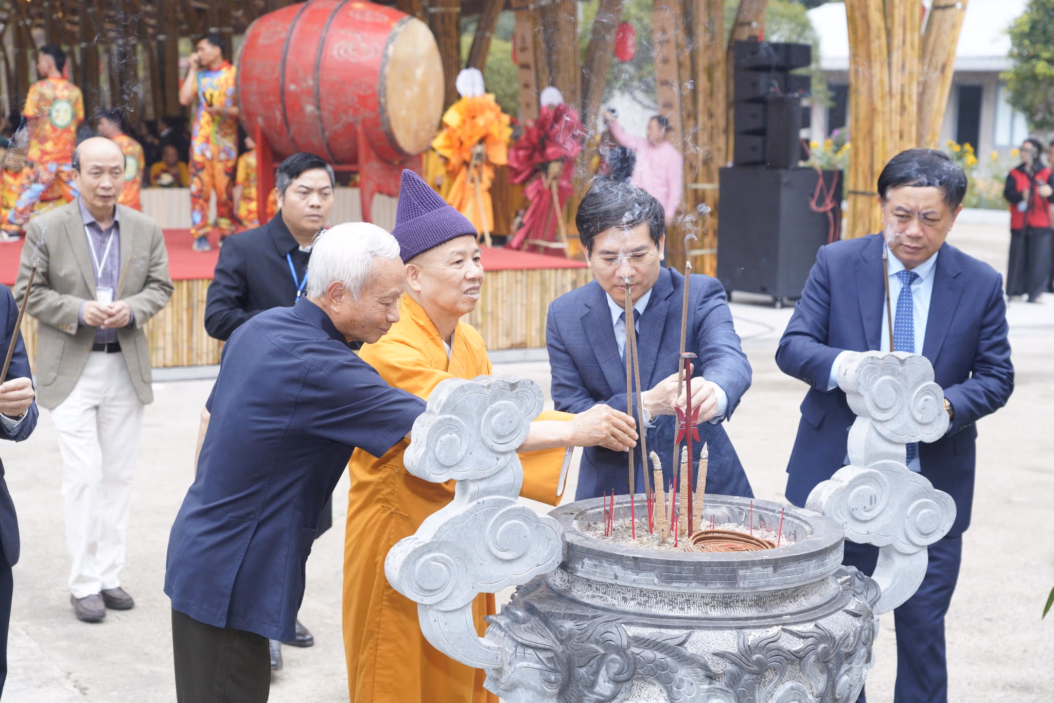 Các đại biểu, tăng ni, phật tử cùng đông đảo nhân dân thực hiện nghi thức cầu Quốc thái dân an, gửi gắm ước nguyện bình an, thịnh vượng cho đất nước và mỗi gia đình trong năm Bính Ngọ 2026.