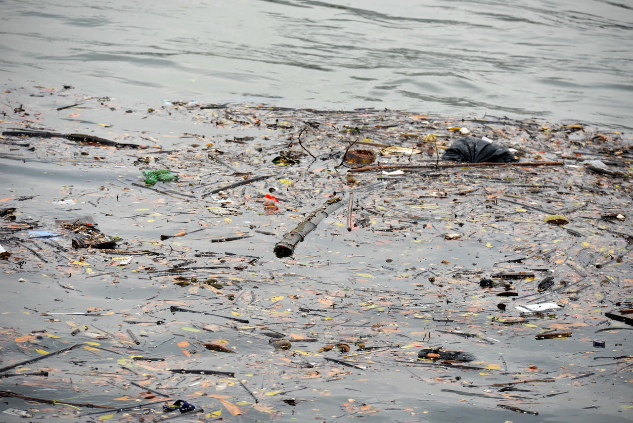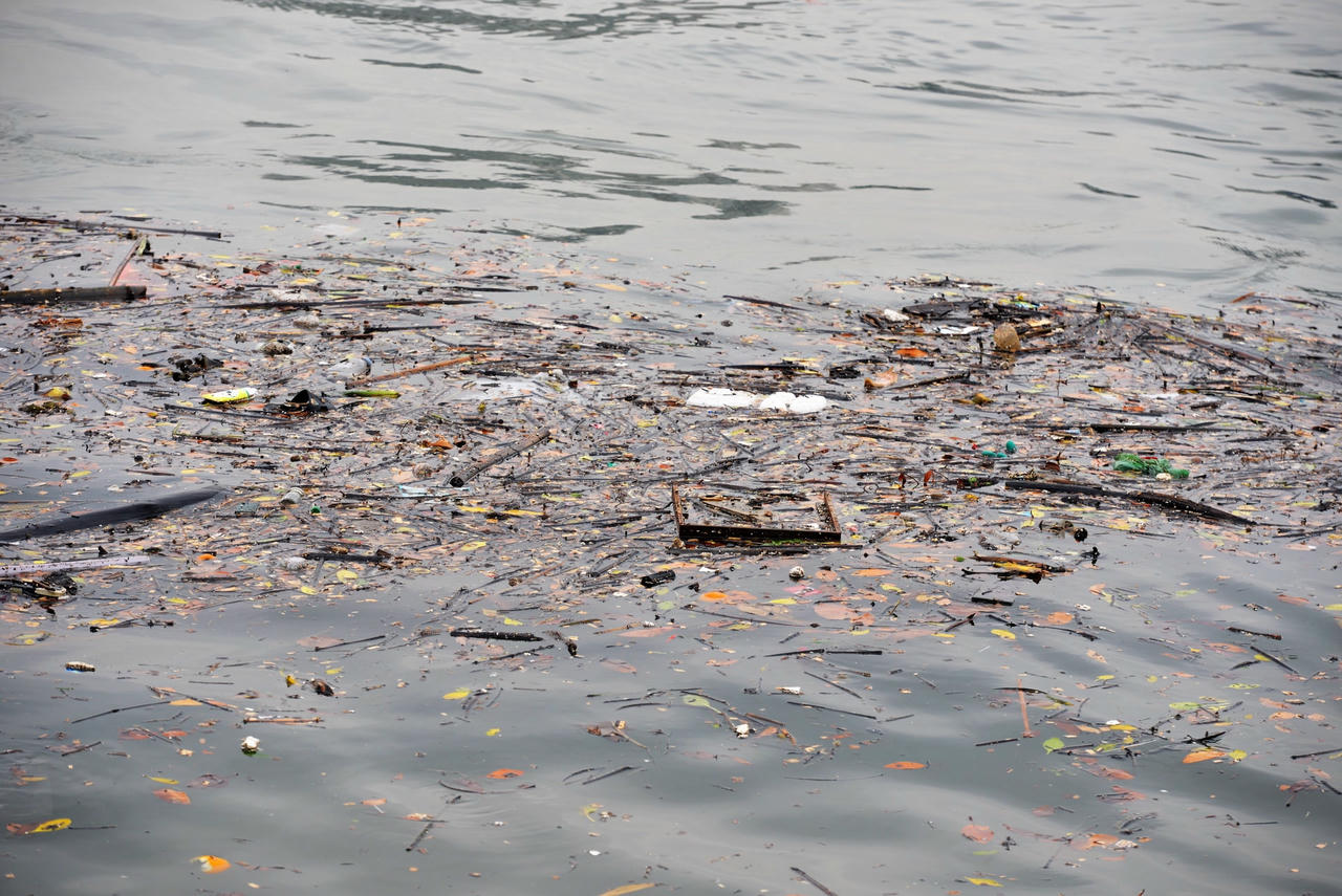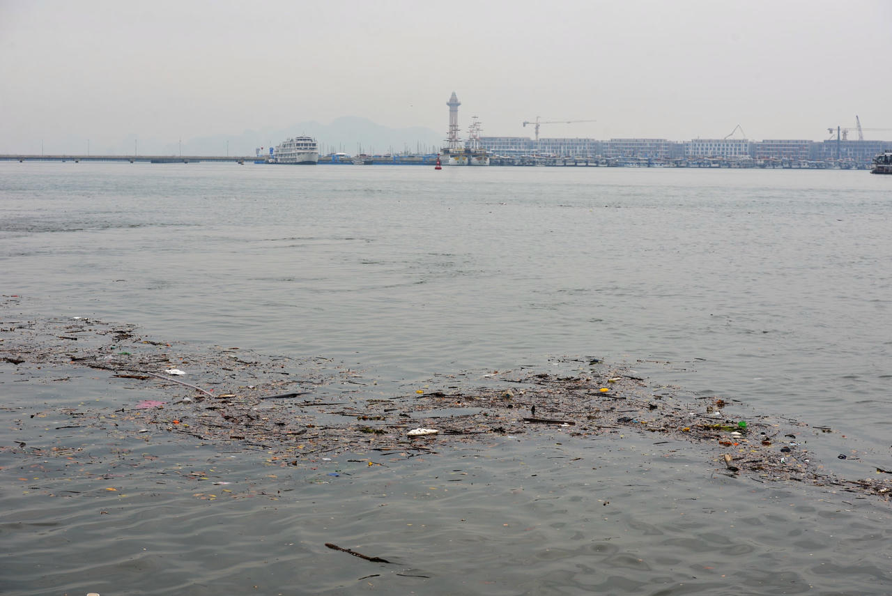 Các mảng rác lớn trôi nổi kéo dài ở khu vực ven bờ biển.