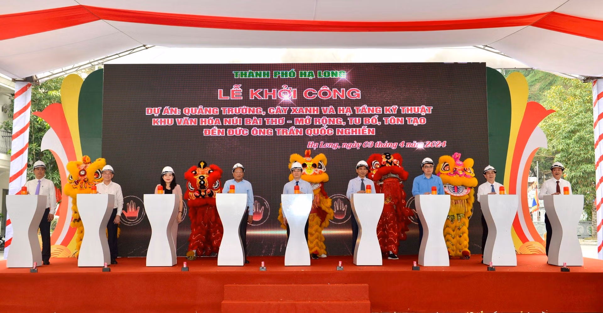 Ngày 3/4, TP Hạ Long tổ chức lễ khởi công dự án Quảng trường, cây xanh và hạ tầng kỹ thuật khu văn hoá núi Bài Thơ; Mở rộng, tu bổ, tôn tạo đền Đức Ông Trần Quốc Nghiễn.