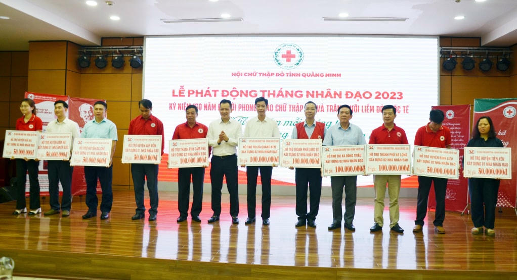 Tại Lễ phát động, đã có 7 cá nhân, tổ chức và Hội Chữ thập đỏ 13 huyện, thị xã, thành phố trong tỉnh đã trao tặng hơn 4 tỷ đồng ủng hộ chương trình “Tháng Nhân đạo 2023”. Trong đó, Tập đoàn Công nghiệp Than – Khoáng sản Việt Nam ủng hộ 800 triệu đồng để xây dựng 16 căn nhà nhân đạo; Công ty TNHH K+K Fashion ủng hộ 4.000 bộ quần áo trẻ em mới có tổng giá trị hơn 341 triệu đồng;…