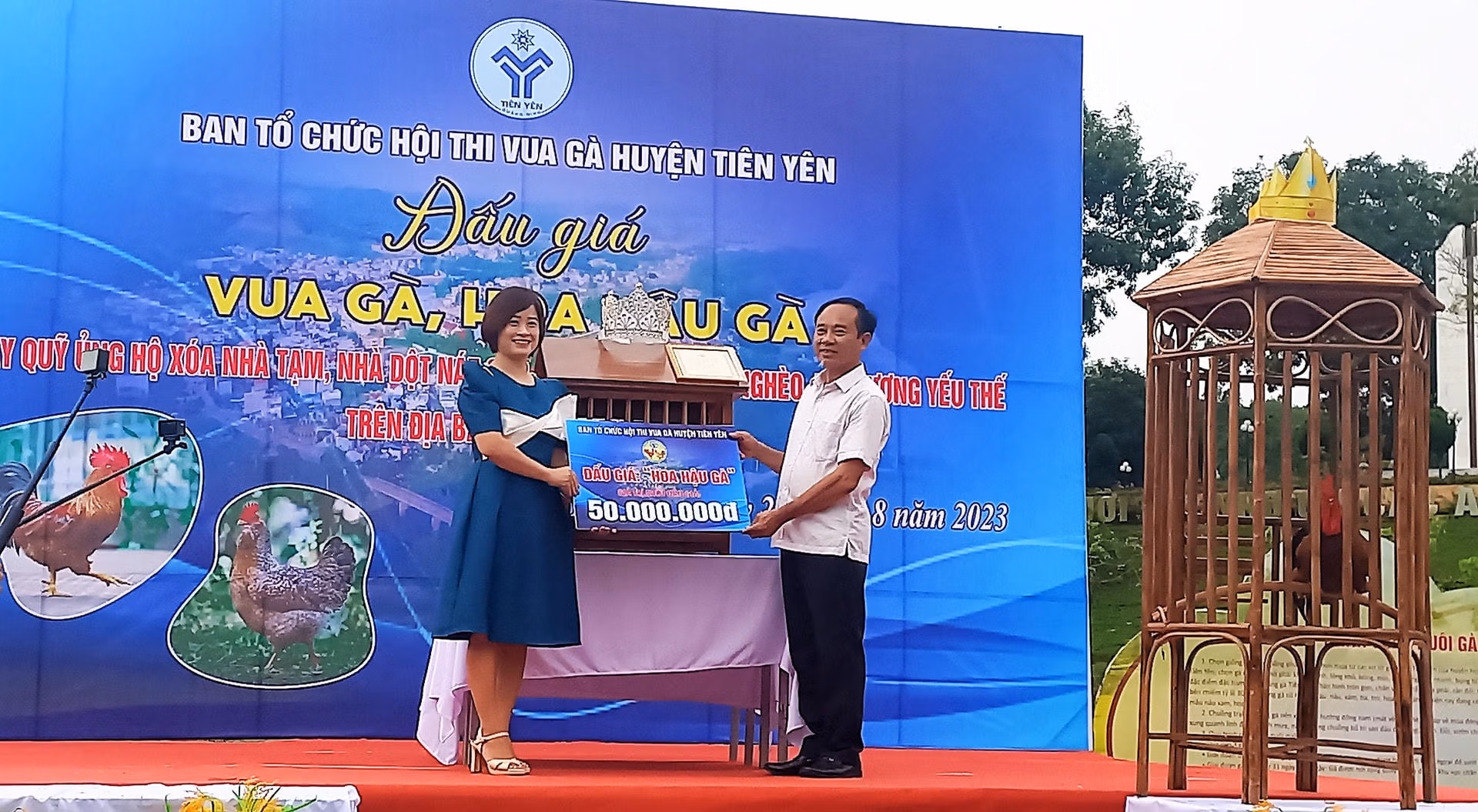 Những chú gà đạt danh hiệu cao tại Hội thi Vua gà Tiên Yên 2023 đã đưa ra đấu giá nhằm gây quỹ ủng hộ xóa nhà tạm, nhà dột nát trên địa bàn huyện.
