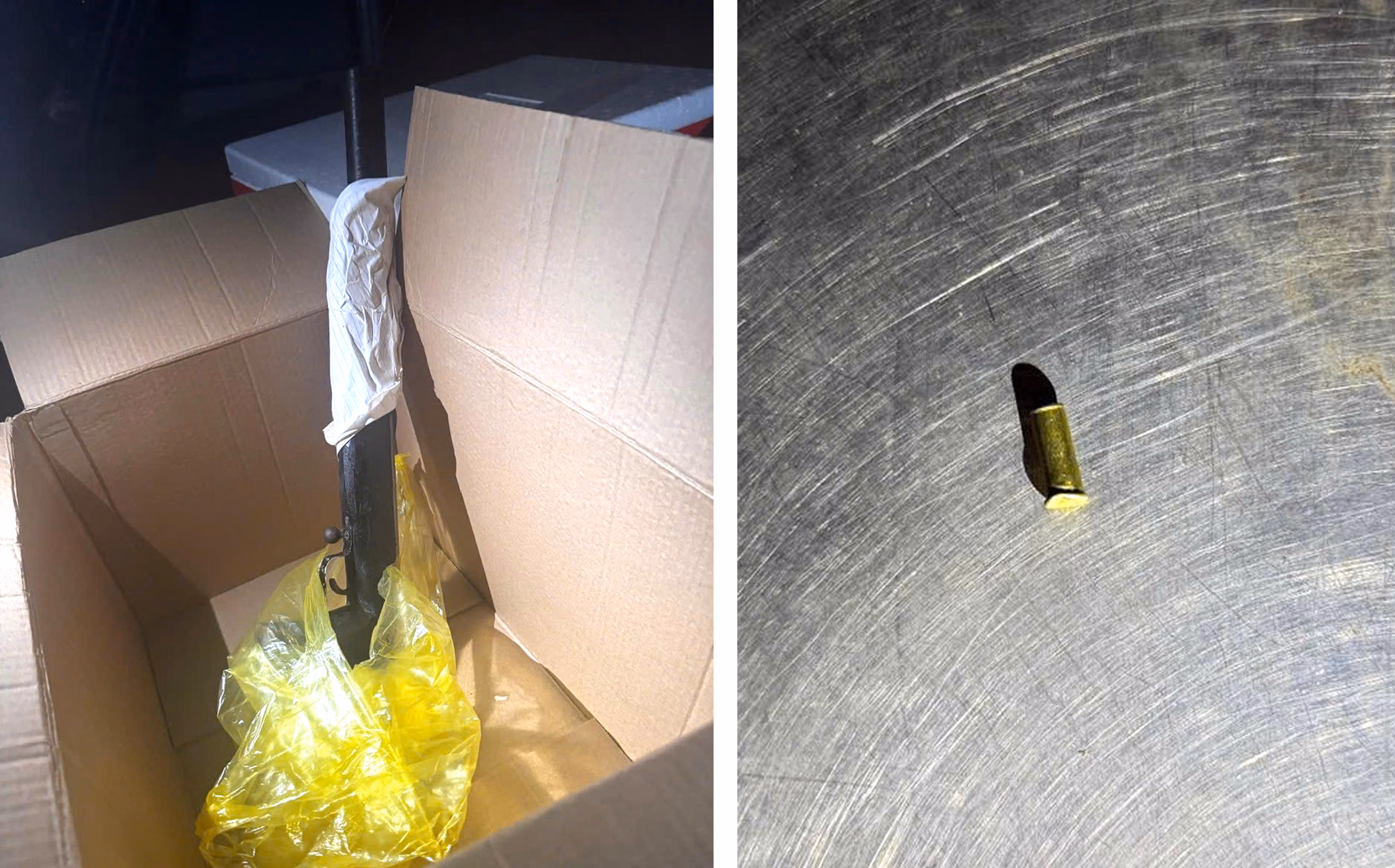 Tại hiện trường, lực lượng chức năng thu giữ khẩu súng tự chế cùng nhiều vỏ đạn, phục vụ công tác điều tra.