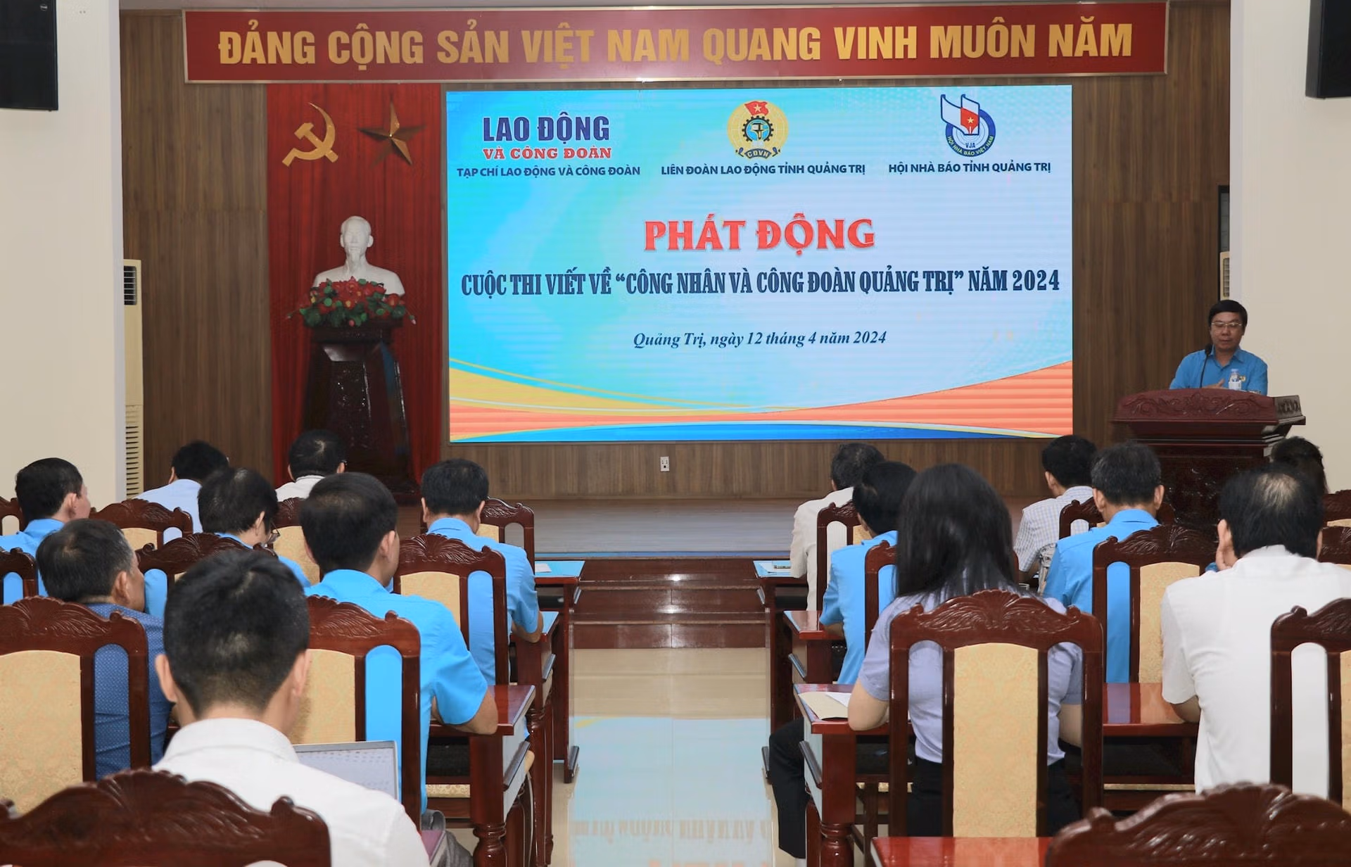 Sáng 12/4, tại trụ sở Liên đoàn Lao động tỉnh Quảng Trị diễn ra Lễ phát động Cuộc thi viết về đề tài “Công nhân và Công đoàn tỉnh Quảng Trị” năm 2024.