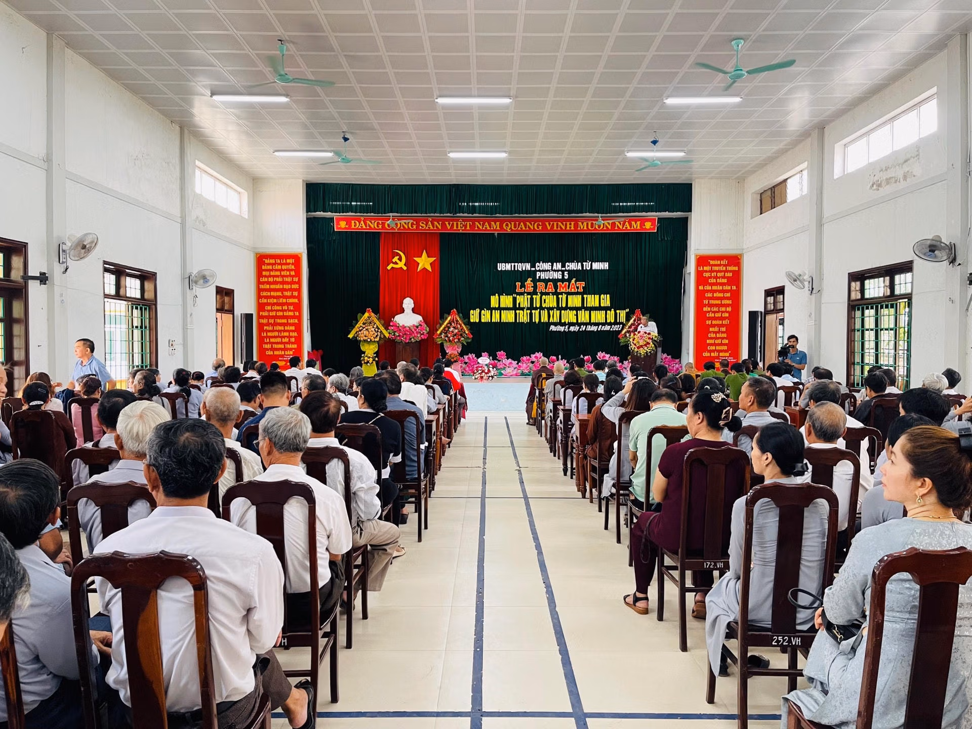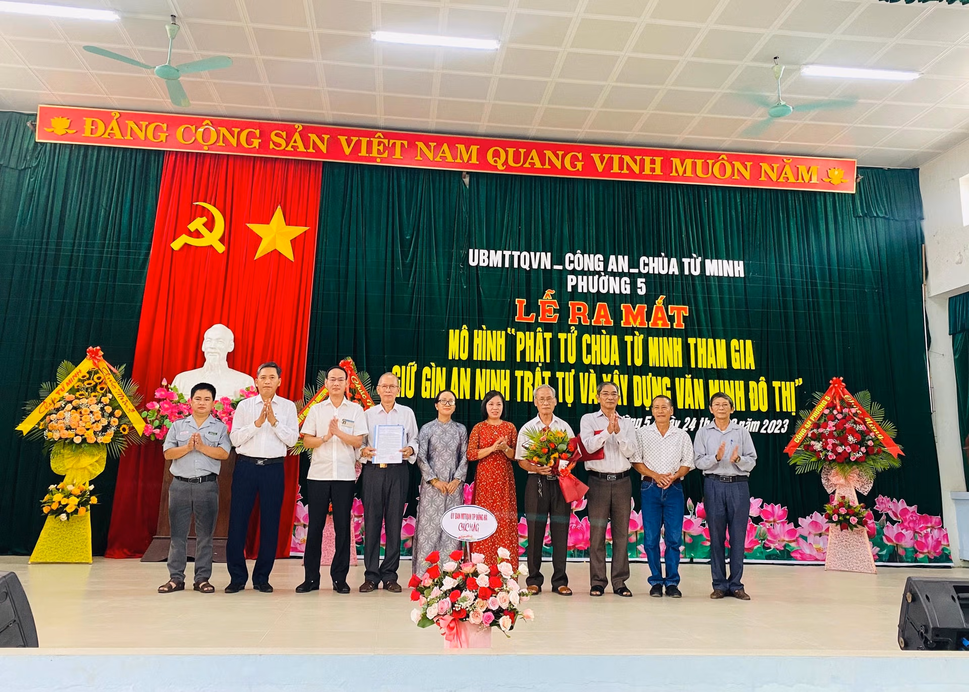 Sáng 24/8, Ủy ban MTTQ Việt Nam phường 5 (TP Đông Hà, tỉnh Quảng Trị) phối hợp với các cơ quan, tổ chức trên địa bàn gồm: Công an phường 5 và Chùa Từ Minh tổ chức lễ ra mắt mô hình “Phật tử tham gia giữ gìn an ninh, trật tự và xây dựng văn minh đô thị”.