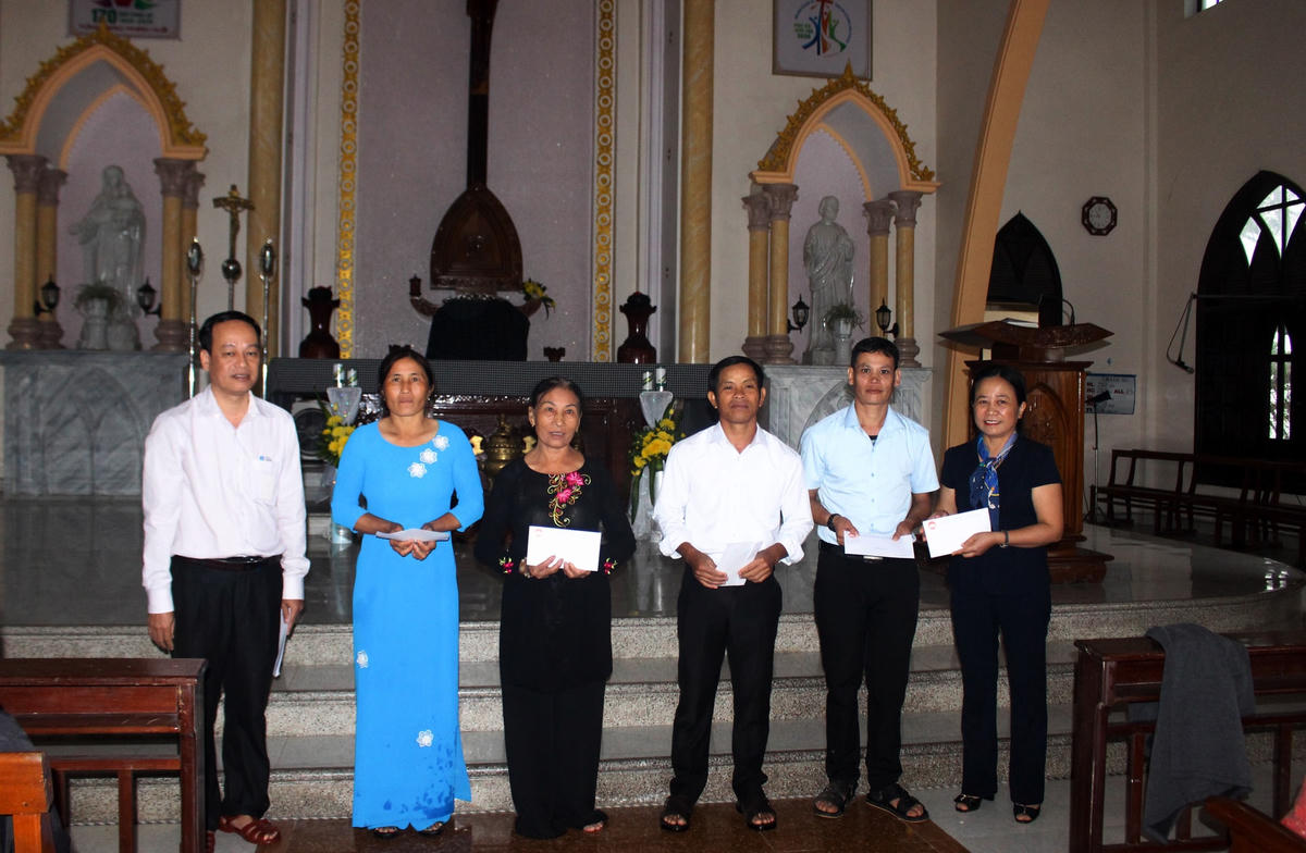Đoàn đã đến thăm và trao 136 suất quà bao gồm tiền mặt, trị giá 500 nghìn đồng/suất và một số như yếu phẩm thiết yếu như mì ăn liền, gạo, bánh tét, nến, ... cho người dân các giáo xứ Giáo xứ Hội Điền, Giáo xứ Cây Da và Giáo xứ Mỹ Chánh.