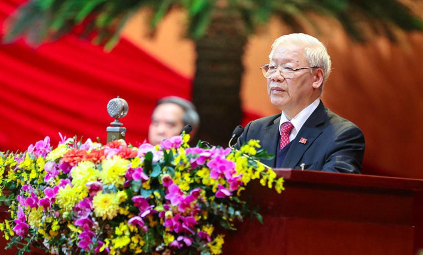 Thay mặt Ban Chấp hành khoá mới, Tổng Bí thư, Chủ tịch nước Nguyễn Phú Trọng phát biểu, cảm ơn Đại hội, các đại biểu đã tin cậy, tín nhiệm bầu và giao trọng trách lớn lao nhưng cũng vô cùng vinh dự.