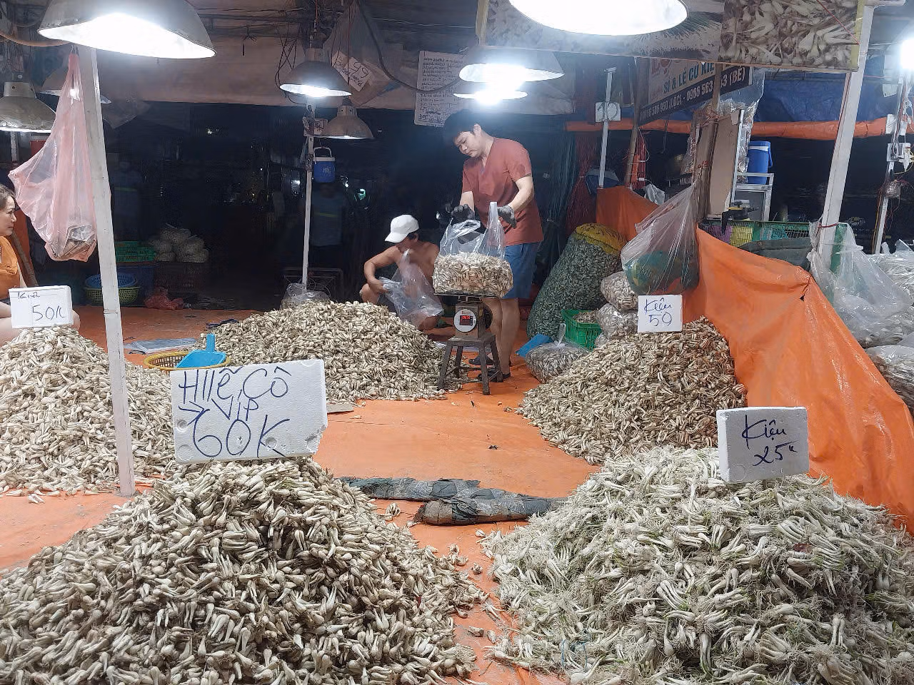 Đối với nhóm hàng rau củ quả và trái cây, ngoài lượng hàng nhập chợ hằng ngày, các thương nhân còn chủ động dự trữ thêm tại kho lạnh và xe container lạnh đậu trong và ngoài khu vực chợ. Tổng lượng hàng dự trữ ước khoảng 3.000 tấn, chủ yếu là cà rốt, khoai tây, hành, tỏi… sẵn sàng tung ra thị trường khi nhu cầu tăng đột biến vào những ngày cận Tết và sau Tết.