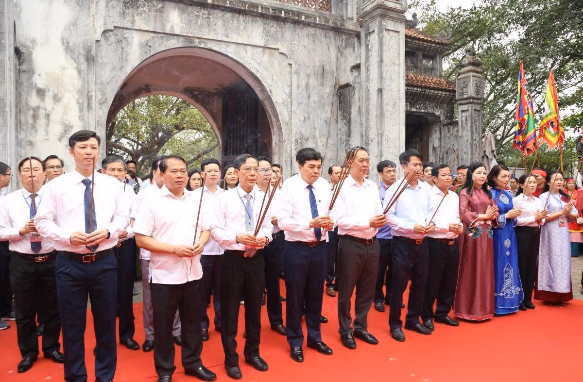 Trong không khí thành kính và tôn nghiêm, Chủ tịch UBND tỉnh Nguyễn Hoài Anh cùng lãnh đạo tỉnh Thanh Hóa và các đại biểu đã dâng hương, kính cáo trước anh linh Anh hùng dân tộc Triệu Thị Trinh và các bậc tiền nhân.