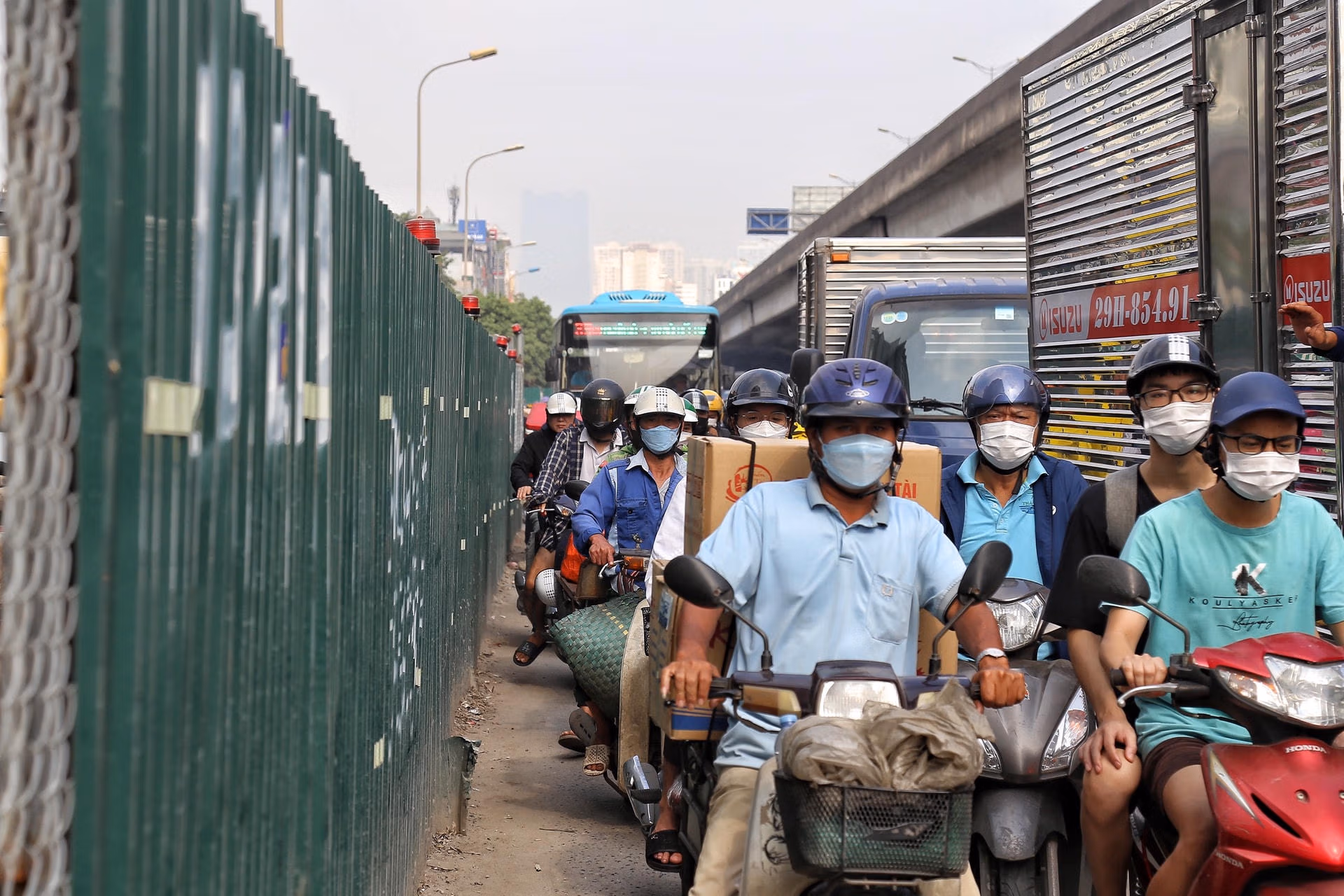 “Việc rào chắn này khiến tôi vô cùng bức xúc khi phải chen, nhích từng chút để di chuyển trong thời tiết nóng nực. Đặc biệt, do lượng phương tiện bị ùn tắc rất đông khiến khói bụi của hàng nghìn chiếc xe cùng xả thẳng ra môi trường gây ra một mùi khét rất khó chịu. Nhiều khi do công việc khá bận rộn buộc tôi phải trèo lên vỉa hè để tránh ùn tắc dù biết rất nguy hiểm nhưng buộc phải làm thế”, chị Linh chia sẻ.
