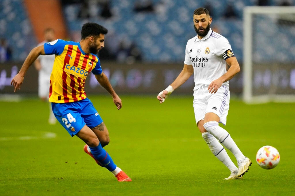 Real Madrid chịu nhiều áp lực sau thất bại cay đắng trước Villarreal ở vòng 16 La Liga và họ phải thắng Valencia để lấy lại hình ảnh. Sau khi tạo ra được một số cơ hội rõ rệt nhưng không tận dụng thành công, Real Madrid đã có được bàn thắng ở cuối hiệp 1.