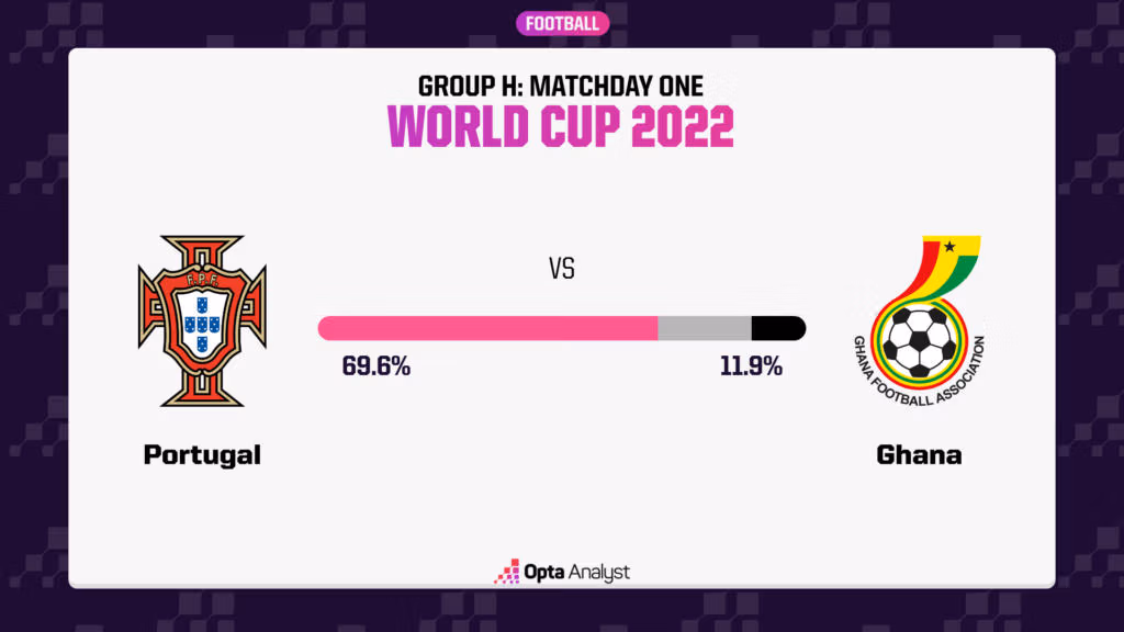 Trong khi đó, Ghana là đội có thứ hạng thấp nhất tại World Cup - vị trí thứ 61 trên BXH FIFA. Họ được đánh giá là đội yếu nhất bảng H. Tuy nhiên, Saudi Arabia và Nhật Bản đã cho thấy mọi thứ đều có thể xảy ra tại giải đấu năm nay khi lần lượt đánh bại Argentina và Đức với cùng một kịch bản lội ngược dòng.