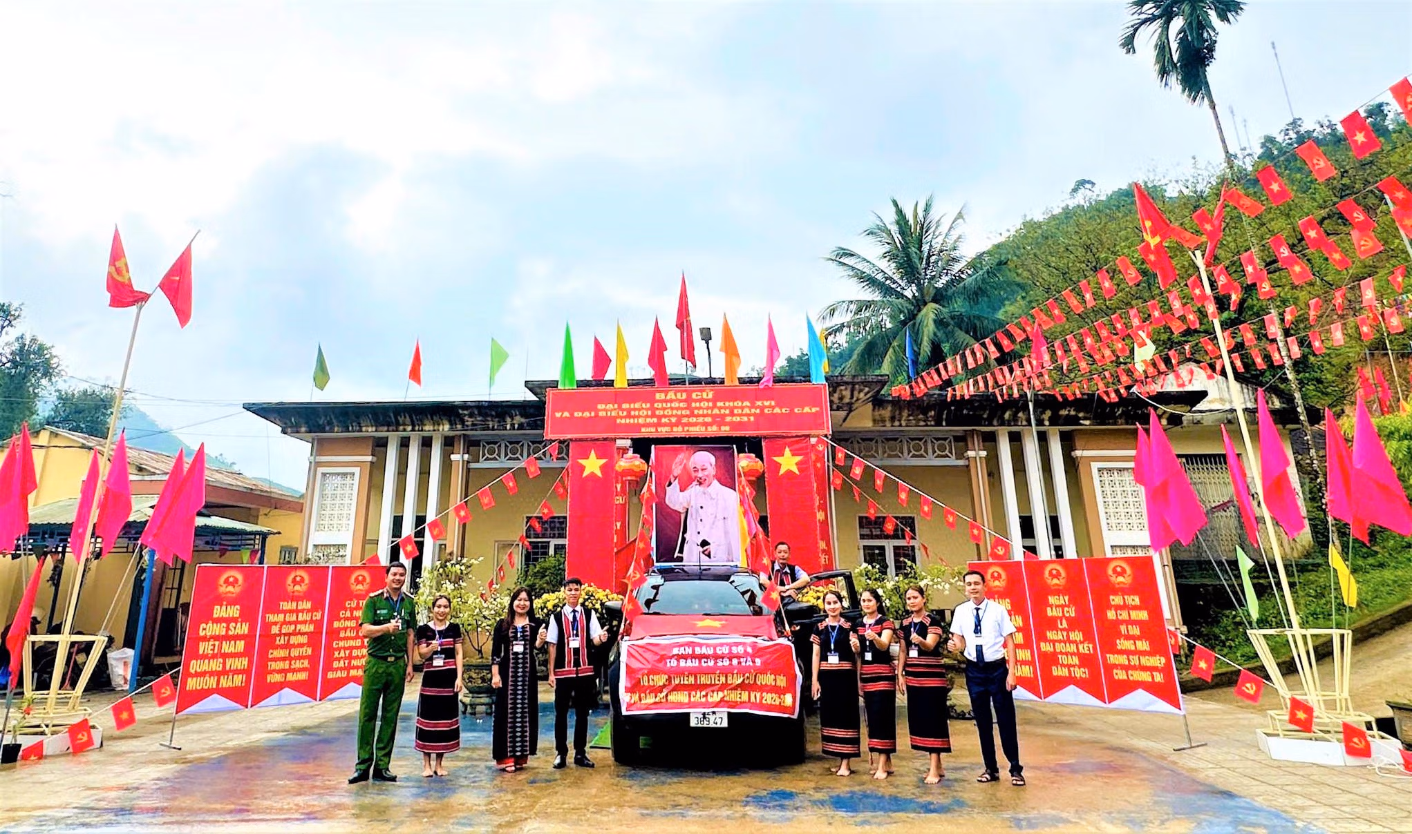 Rực rỡ cờ hoa trong ngày bầu cử ở xã Trà Leng