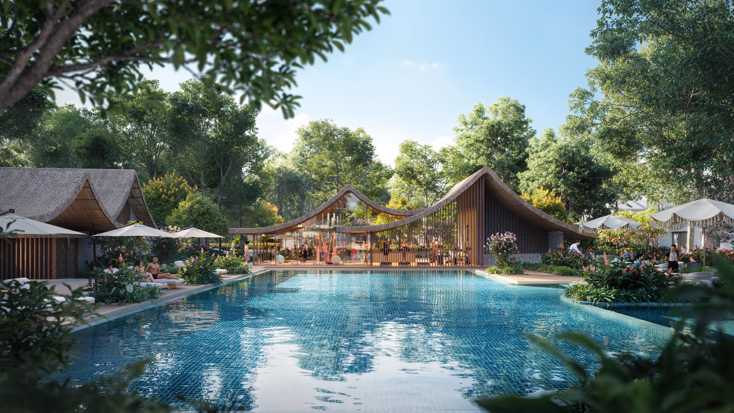 Với quy mô 2.600 m2, Zen Clubhouse được bố trí bể bơi điện phân muối và 3 khối công năng phục vụ đời sống cư dân gồm: gym, yoga, sauna, steam, phòng đa năng cho các hoạt động tiệc riêng khi cư dân có nhu cầu sử dụng. Với chiến lược phát triển tiện ích phục vụ cư dân đại đô thị, nhà sáng lập Ecopark cũng sẽ vận hành đồng loạt các clubhouse tại phân khu mở như Zen Clubhouse, Tropical Clubhouse theo tiêu chuẩn hiện đại, tiện nghi, hướng đến sự bền vững để khuyến khích trải nghiệm sử dụng và chăm sóc sức khỏe dành cho cư dân Eco Retreat.