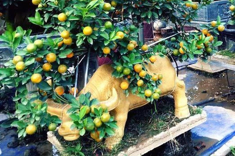 Có lẽ cũng bởi vậy, ý tưởng những chiếc bình gốm trồng quất cảnh được tạo hình những chú trâu vàng, trâu đen trở nên thân thương và quý giá với mỗi gia đình. Đến vựa quất Tứ Liên, bạn dễ dàng gặp “hàng đàn trâu” ngoan hiền đủ các màu sắc, kiểu dáng nhưng đều mang đặc điểm chung là cõng trên lưng cây quất bonsai kiểu dáng, thế độc, lạ. Cây nào cây nấy trĩu trịt quả mọng tròn, mơn mởn chồi non lộc biếc.