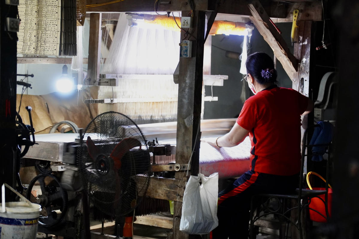 Ken mẫu hoa văn trước khi dệt.