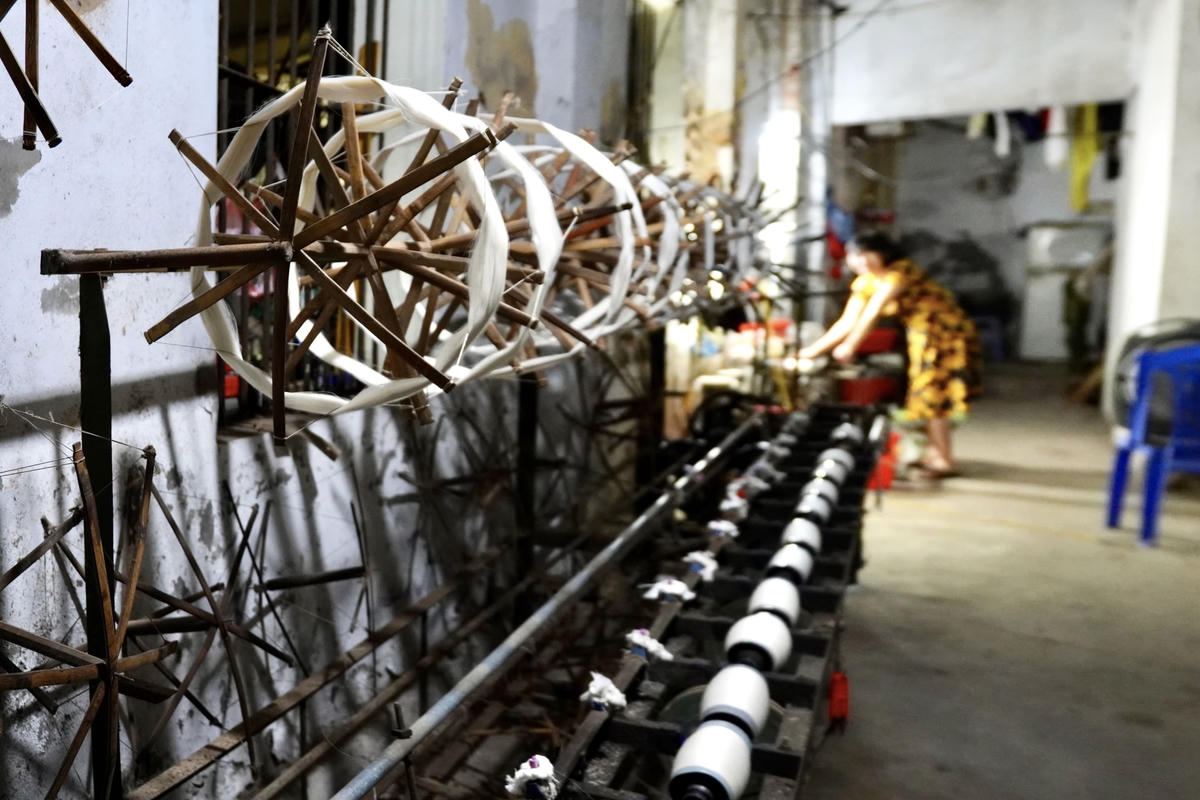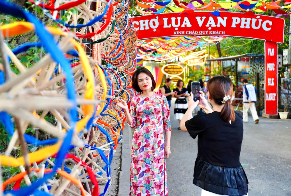 Làng lụa Vạn Phúc (Hà Đông, Hà Nội) từ lâu nổi tiếng với nghề dệt lụa. Qua thời gian, lụa Vạn Phúc vẫn giữ được nét đẹp truyền thống. Trải nghiệm làng lụa, du khách có thể lựa chọn cho mình một món quà lưu niệm hay may đo những bộ áo dài, được tận mắt chứng kiến các công đoạn dệt lụa và thỏa sức check-in với con đường ô rực rỡ sắc màu hay những guồng quay tơ ấn tượng.