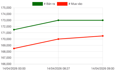 Cập nhật dữ liệu tại thời điểm 8h30 phút sáng ngày 14/4, vàng SJC loại 1 lượng, 10 lượng và 1kg được niêm yết ở mức 170,5 – 173 triệu đồng/lượng (mua vào – bán ra). Các loại SJC 5 chỉ, 1 chỉ, 2 chỉ có giá bán ra nhỉnh hơn, dao động quanh 173,02 – 173,03 triệu đồng/lượng.