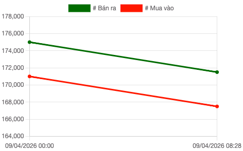 Thị trường vàng trong nước sáng 9/4 chứng kiến cú đảo chiều kinh hoàng: giá SJC lao dốc từ 177 triệu đồng xuống còn 171,5 triệu đồng/lượng, mức giảm mạnh nhất trong nhiều tuần trở lại đây.