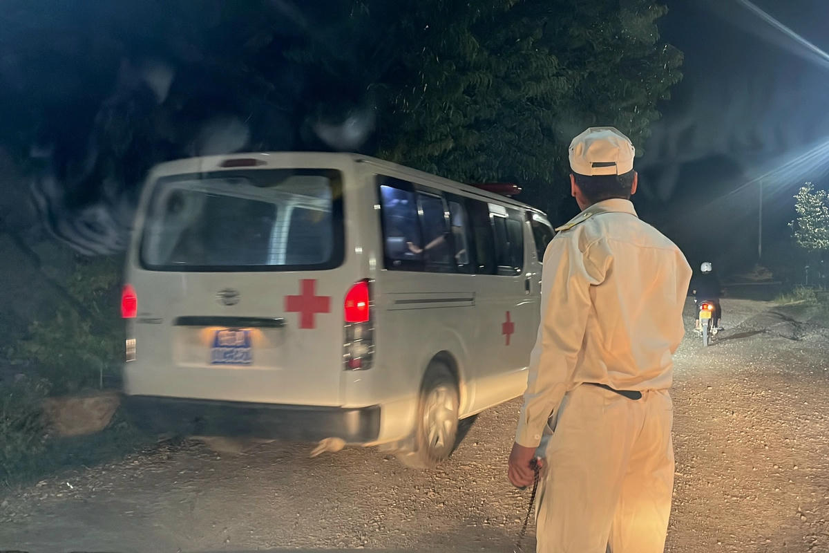 Xe cứu thương đến hiện trường vụ sập bãi thải titan (Ảnh: Trúc Hà).