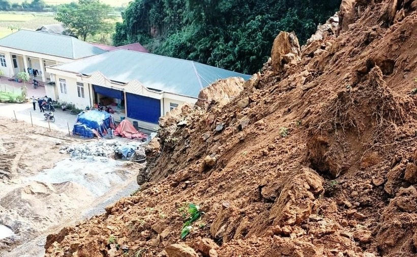 Do ảnh hưởng bởi mưa lớn kéo dài, quả đồi phía sau Trường Mầm non Hiền Kiệt (huyện Quan Hóa, Thanh Hóa) đang bị sạt lở, đe dọa đến tính mạng học sinh và giáo viên tại đây