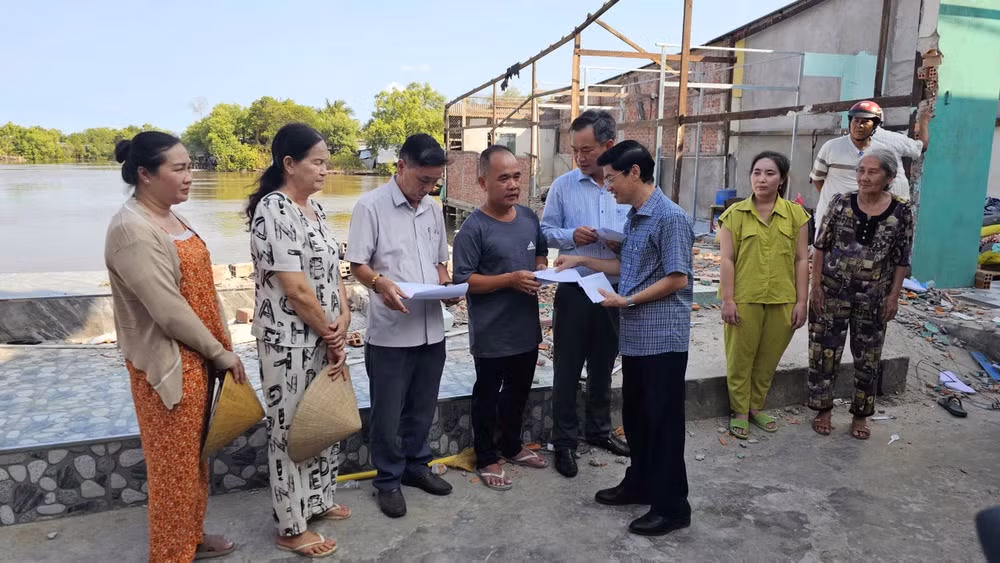 Chiều 21/4, Chủ tịch Ủy ban nhân dân phường Tân Thành (tỉnh Cà Mau ) Võ Minh Tân cho biết, cơ quan này vừa thành lập đoàn đến tận nơi thăm hỏi, động viên và hỗ trợ bước đầu cho các hộ dân có nhà bị ảnh hưởng trong vụ sạt lở đất dọc tuyến kênh xáng Bạc Liêu-Cà Mau.