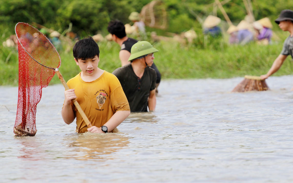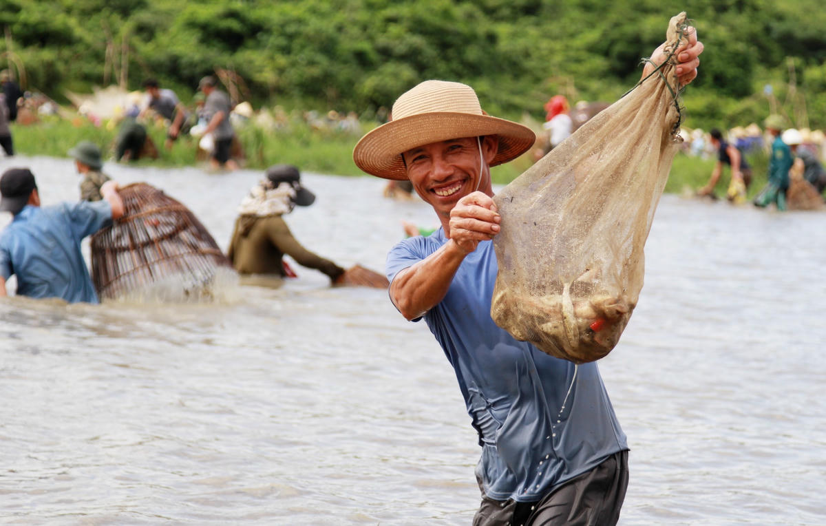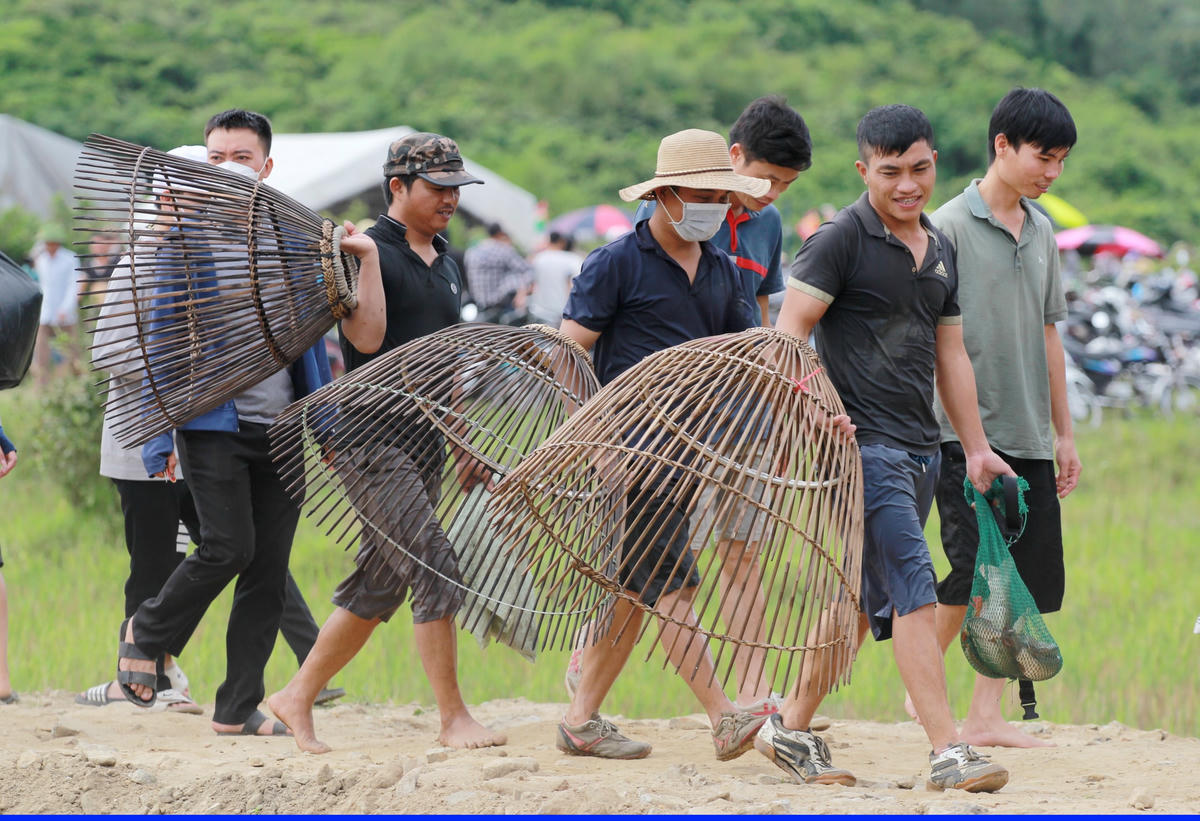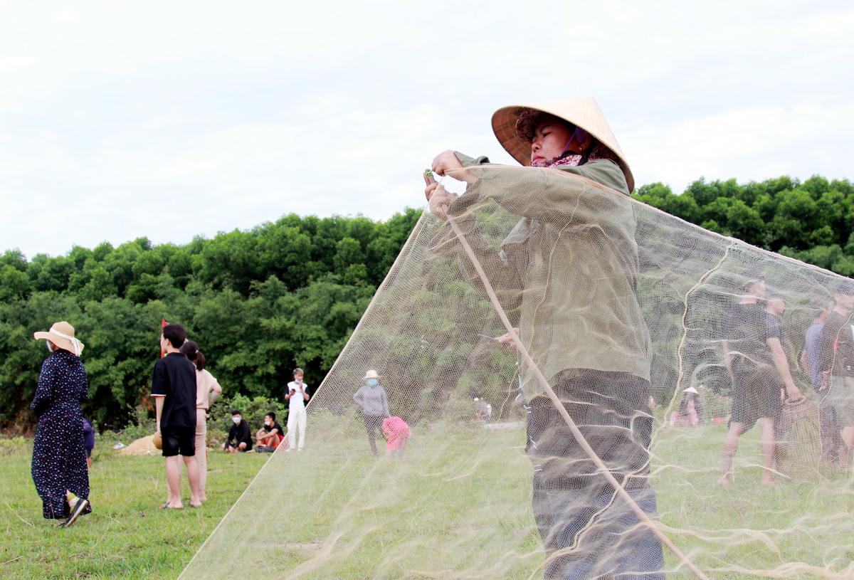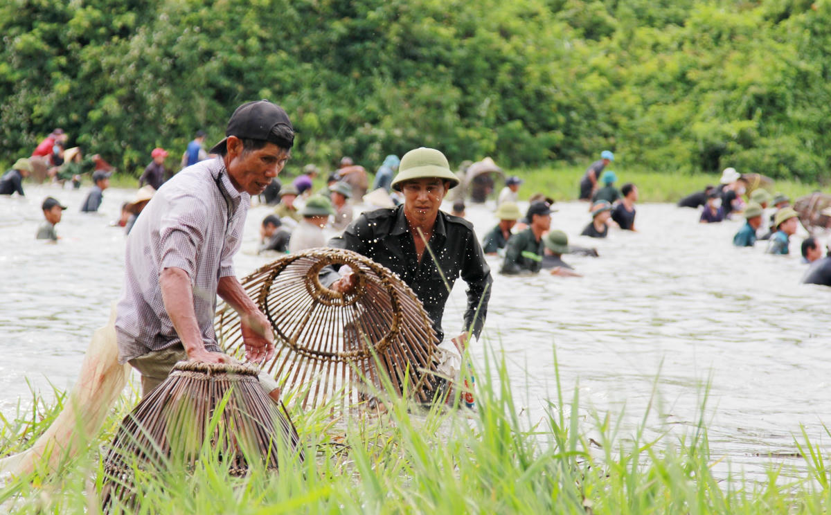Sau tiếng trống khai hội, hàng nghìn người dân từ già trẻ, trai gái tay cầm mơn, vó… nô nức đua nhau xuống đầm Vực Rào để bắt cá.