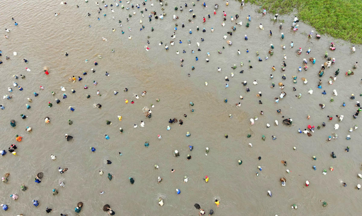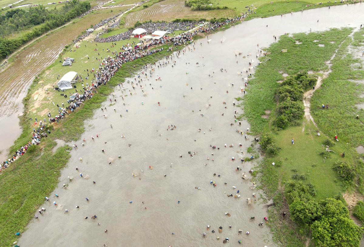 Sau trống khai hội, hàng nghìn người đua nhau xuống đầm Vực Rào bắt cá