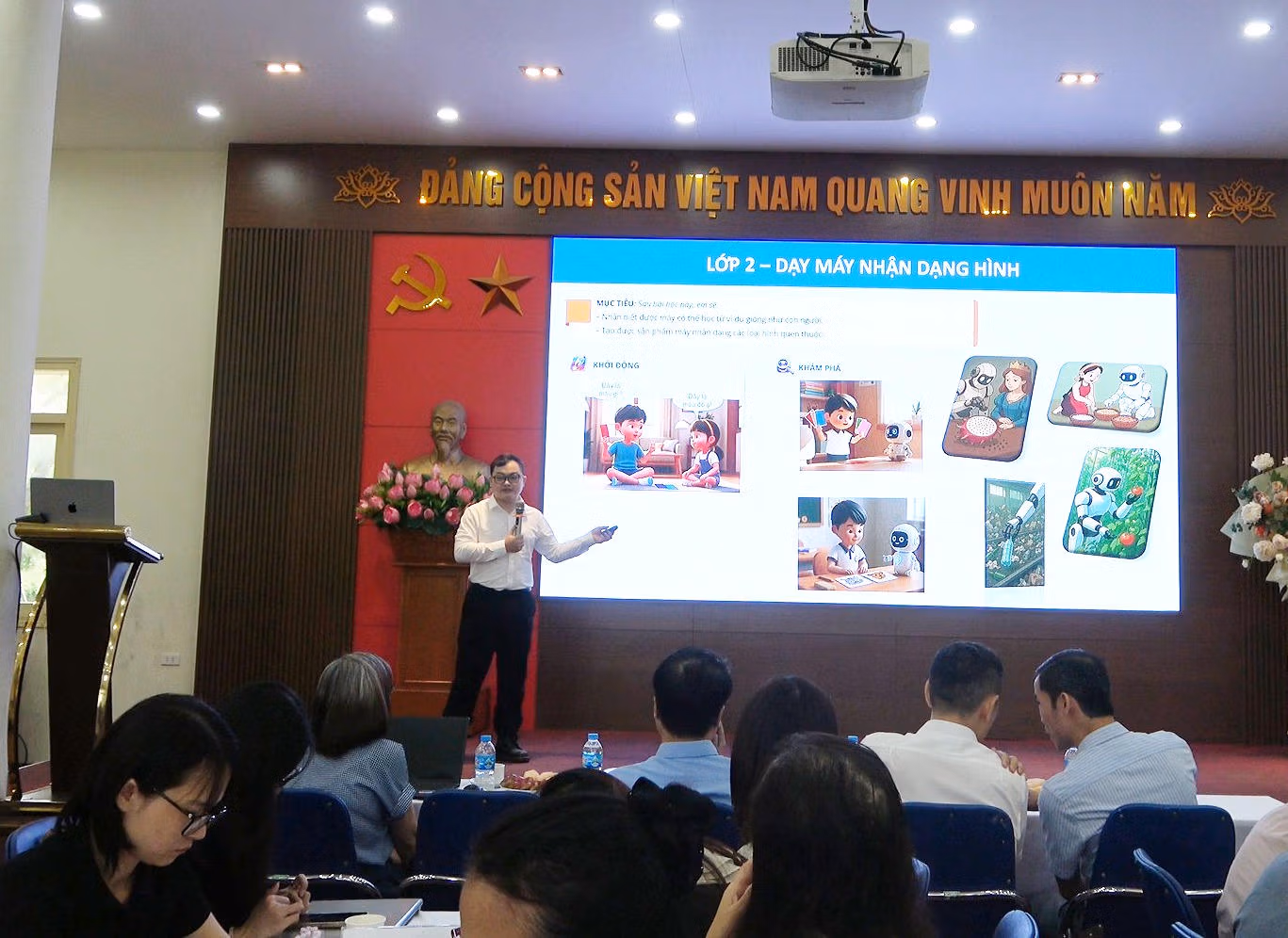 Cấp Tiểu học (Làm quen): học sinh nhận biết AI qua các ứng dụng trực quan (nhận diện hình ảnh, giọng nói), hiểu rằng AI do con người tạo ra và bước đầu hình thành ý thức bảo vệ dữ liệu cá nhân.