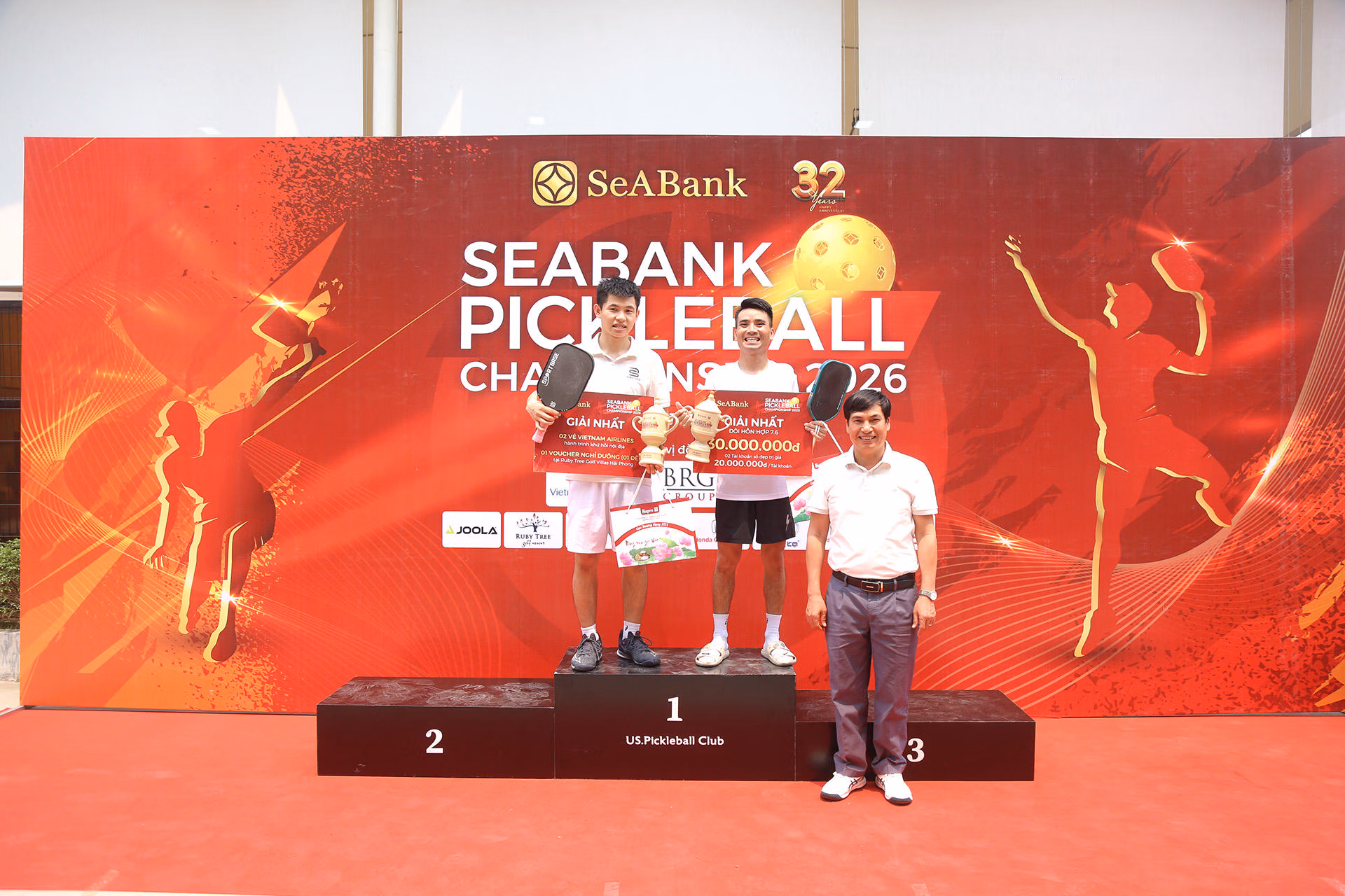 Bên cạnh sự tham gia hưởng ứng nhiệt tình của các vận động viên, SeABank Pickleball Championship 2026 cũng nhận được sự đồng hành của các nhà tài trợ, đối tác đã góp phần quan trọng vào thành công của giải đấu: Tập đoàn BRG, Vietnam Airlines, Công ty CP Gốm Chu Đậu, Tổng Công ty Thương mại Hà Nội – Hapro, Honda Tây Hồ, Ruby Tree Golf Villas Hải Phòng, Legend Valley Contry Club, Joola Pickleball Việt Nam, Vinamotor, Nhà hàng Thủy Tạ, Honda Ôtô Hải Phòng,… Sự ủng hộ không chỉ dừng lại ở nguồn lực tổ chức, học bổng cho trẻ em nghèo, mà còn thể hiện tinh thần tương thân tương ái, sẻ chia, chung tay vì cộng đồng. Chính sự đồng hành của quý đối tác, khách hàng và các đơn vị tài trợ đã giúp SeABank Pickleball Championship 2026 không còn là một sự kiện thể thao, mà trở thành một hoạt động có ý nghĩa xã hội sâu sắc, nơi mỗi đóng góp đều được chuyển hóa thành những giá trị thiết thực cho giáo dục và môi trường.