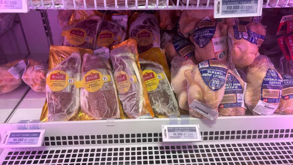 Giá cả có phần đắt đỏ nhưng nhiều món thực phẩm nhập vẫn hút khách mua bởi đang được áp dụng nhiều chính sách ưu đãi, giảm giá sâu trong dịp cận Tết Ất Tỵ. Cụ thể, lõi vai bò Canada nhập khẩu giảm giá từ 259.000 xuống 199.000 VNĐ/500gr, được tặng kèm 1 gói khoai tây chiên 500gr.