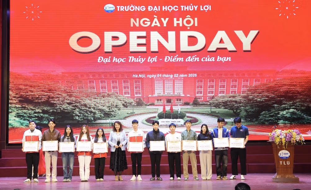 Cùng dịp này, Trường Đại học Thủy lợi đã trao thưởng cho học sinh các trường THPT đạt giải cấp quốc gia và cấp tỉnh; trao học bổng cho sinh viên bị ảnh hưởng bởi bão lũ năm 2025.
