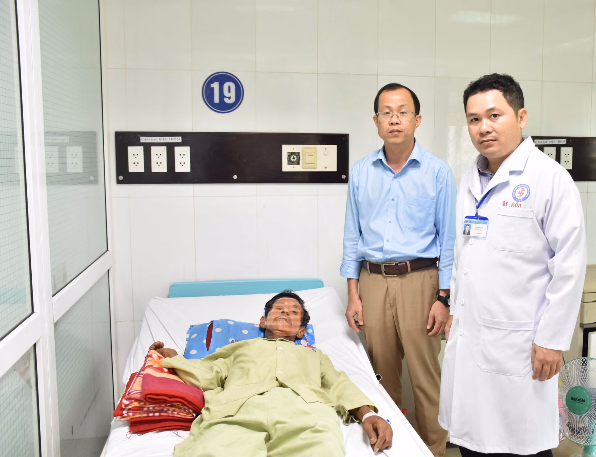 Ngay lập tức, bệnh nhân vừa được hồi sức, vừa nhanh chóng chuyển đến phòng phẫu thuật. Tại đây, vì tình trạng vỡ gan rất phức tạp, chảy máu của bệnh nhân rất nghiêm trọng nên ekip phẫu thuật do bác sĩ CKII Lâm Ngọc Phước, Phó Giám đốc Bệnh viện cùng với bác sĩ CKI Ngô Hoàng Hơn, Phó Trưởng Khoa Ngoại Tổng quát, bác sĩ Nguyễn Hoàng Huy đã khẩn trương dùng kỹ thuật tấn gạt vào gan vở đang chảy máu để cầm máu cho bệnh nhân, bước đầu đã kiểm soát tốt được tình trạng chảy máu, giúp bệnh nhân thoát được cơn nguy kịch. Sau 72 giờ, ekip lại tiếp tục thực hiện thêm một cuộc phẫu thuật nữa để rút gạt, kiểm soát chảy máu, gò mật. Đến hiện tại, tình trạng bệnh nhân đã ổn định, không còn đau bụng, vết mổ khô, mạch, huyết áp ổn định và có thể được xuất viện.