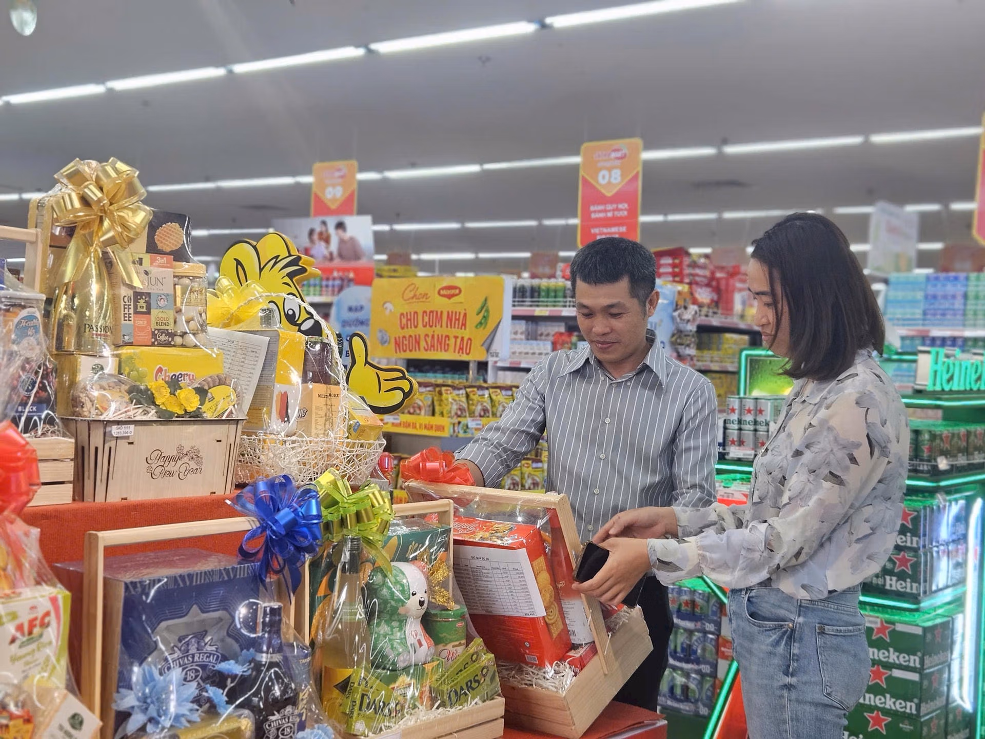 Trước sự phong phú của thị trường giỏ quà Tết 2025, bà Phan Ngọc Hậu (phường Nguyễn Đình Chiểu, quận 3) cho rằng: “Thay vì những giỏ quà tràn ngập bánh kẹo, hoặc bia hay rượu, năm nay thị trường hướng đến những sản phẩm thiết yếu và tốt cho sức khỏe như: dầu ăn, nước yến, hạt nêm... Đây là sự thay đổi theo xu hướng bình dân, đơn giản, tiết kiệm”.