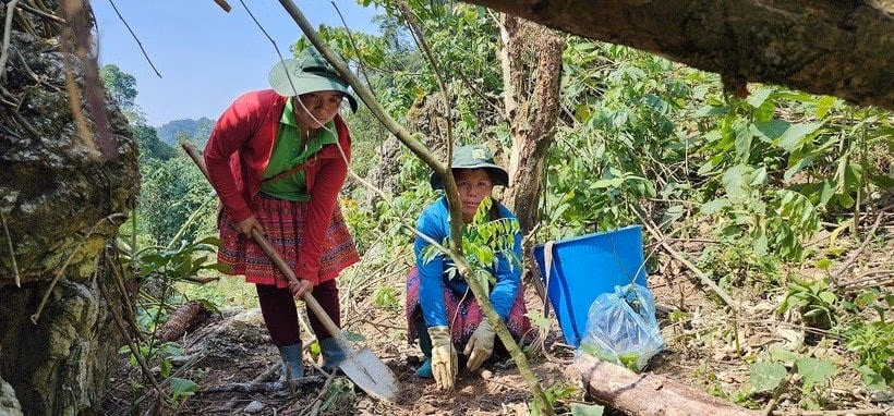 Nhằm thực hiện mục tiêu “vá” 10ha rừng tại địa phương, người dân bản Hua Tạt xã Vân Hồ, huyện Vân Hồ, tỉnh Sơn La đã phối hợp tổ chức trồng khoảng 5.000 cây và phát tán hơn 4.000 bom hạt trên núi đá.
