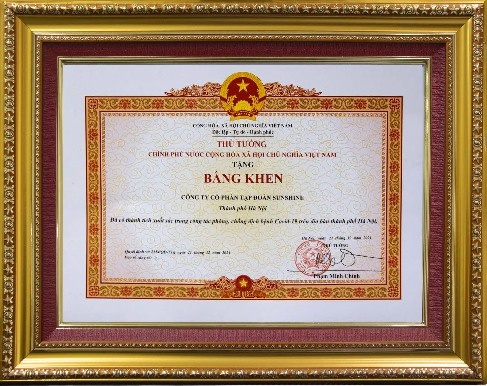 Đặc biệt, hưởng ứng lời kêu gọi của UBTƯ MTTQ Việt Nam và Thành uỷ Hà Nội, với vai trò là đơn vị nòng cốt của Tập đoàn Sunshine (SSG) cùng sự đóng góp chung tay của các công ty thành viên, SSH - SSG đã ủng hộ 20 tỷ đồng cho Quỹ vaccine phòng chống Covid-19. Đồng thời, riêng trong đợt bùng phát dịch cuối tháng 5/2021, SSH - SSG cũng đã trao tặng 2 tỷ đồng ủng hộ chính quyền Bắc Giang để chung tay khắc phục khó khăn, phòng chống đại dịch.