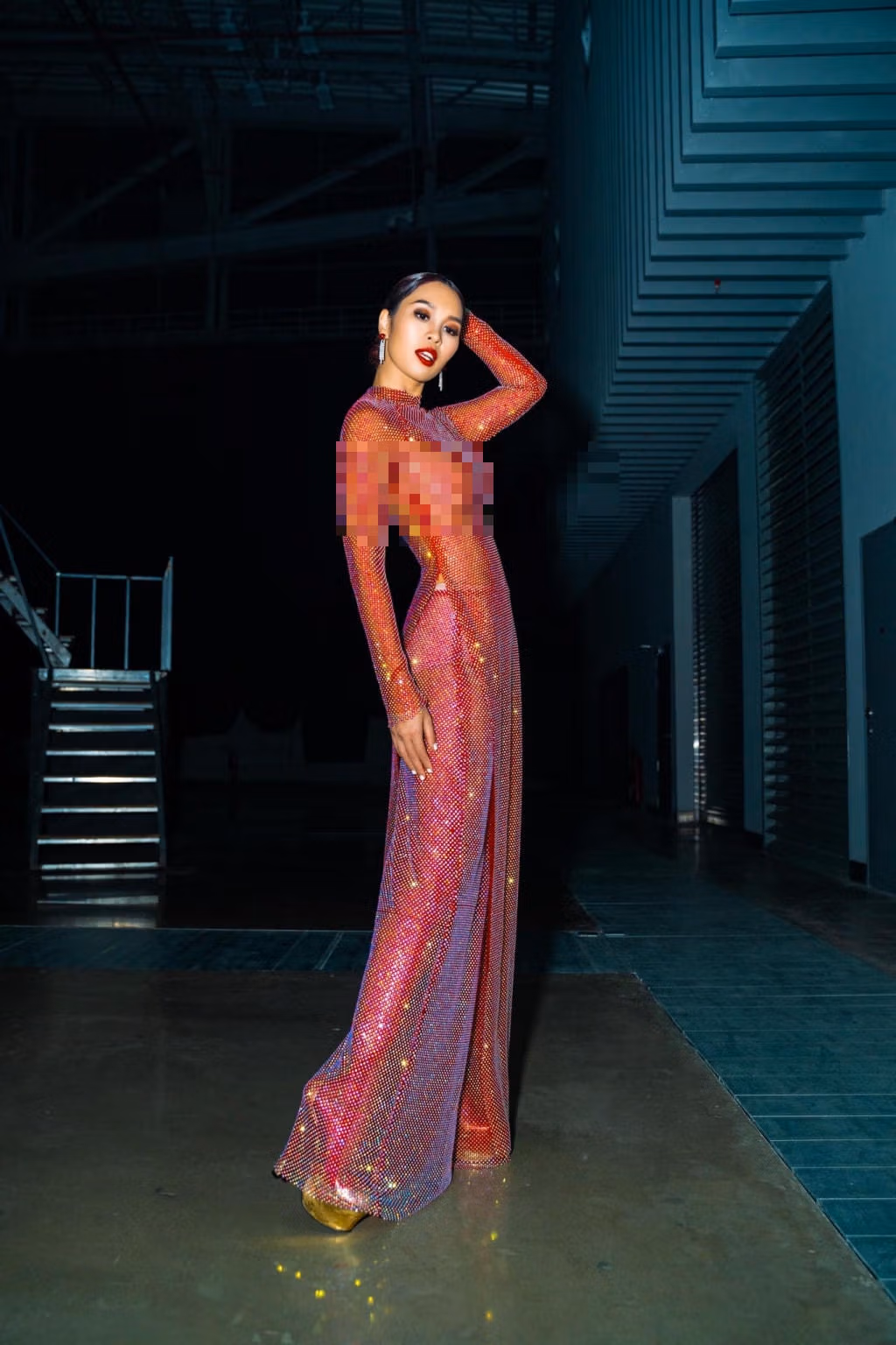 Trong đêm chung kết “Hoa hậu Hoàn vũ Việt Nam” 2022, Hà Anh - một trong những thành viên giám khảo - diện thiết kế xuyên thấu đính sequin, để lộ miếng dán ngực. Nhiều người nhận xét cô phối đồ gây phản cảm bởi thiết kế bên ngoài có dáng giống áo dài.