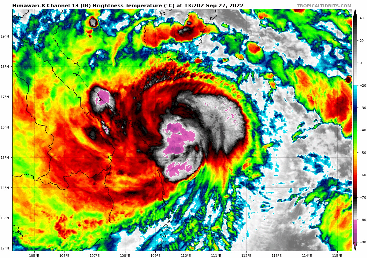Lúc 23h ngày 27/9, Trung tâm Dự báo Khí tượng Thủy văn quốc gia cho biết đã đo được bão mạnh cấp 10, giật cấp 12, tăng một cấp so với thời điểm nhiều giờ trước đó. Các đảo cũng ghi nhận cấp bão tăng, như Cồn Cỏ cấp 7, giật cấp 9; Đồng Hới, Huế, Đà Nẵng giật cấp 7.