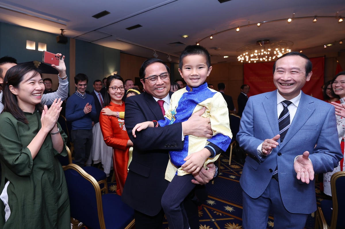 “Tôi mong sứ quán phải coi bà con như người nhà mình, giải quyết công việc cho bà con như công việc của nhà mình, đừng câu nệ gì cả” - Thủ tướng nói đồng thời mong muốn bà con kiều bào nêu cao lòng tự hào dân tộc, nỗ lực phấn đấu vươn lên, tiếp tục đoàn kết, chung sức, đồng lòng chung tay xây dựng một cộng đồng phát triển, vững mạnh, ngày càng có vai trò, vị trí cao trong xã hội sở tại; tiếp tục làm cầu nối vững chắc trong quan hệ hữu nghị Việt Nam với các quốc gia trên thế giới; giữ gìn, phát huy bản sắc văn hóa dân tộc, ngôn ngữ tiếng Việt, luôn hướng về quê hương, đất nước, đóng góp thiết thực đối với việc triển khai chính sách đại đoàn kết toàn dân tộc của Đảng, Nhà nước.