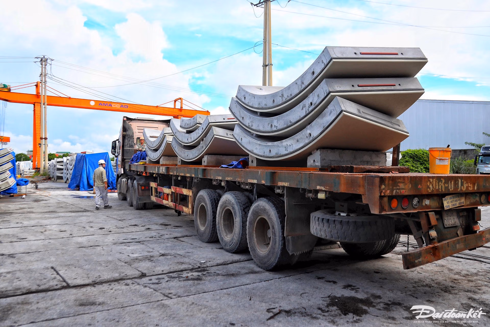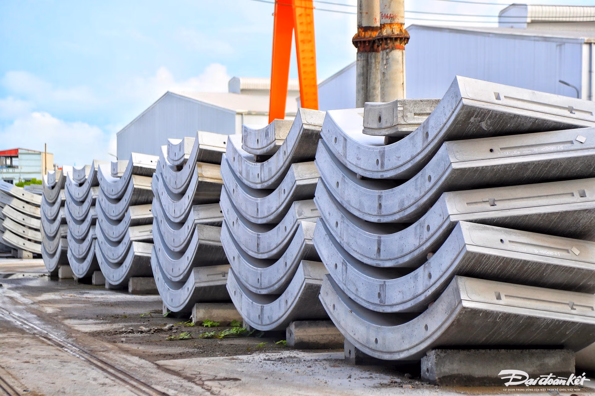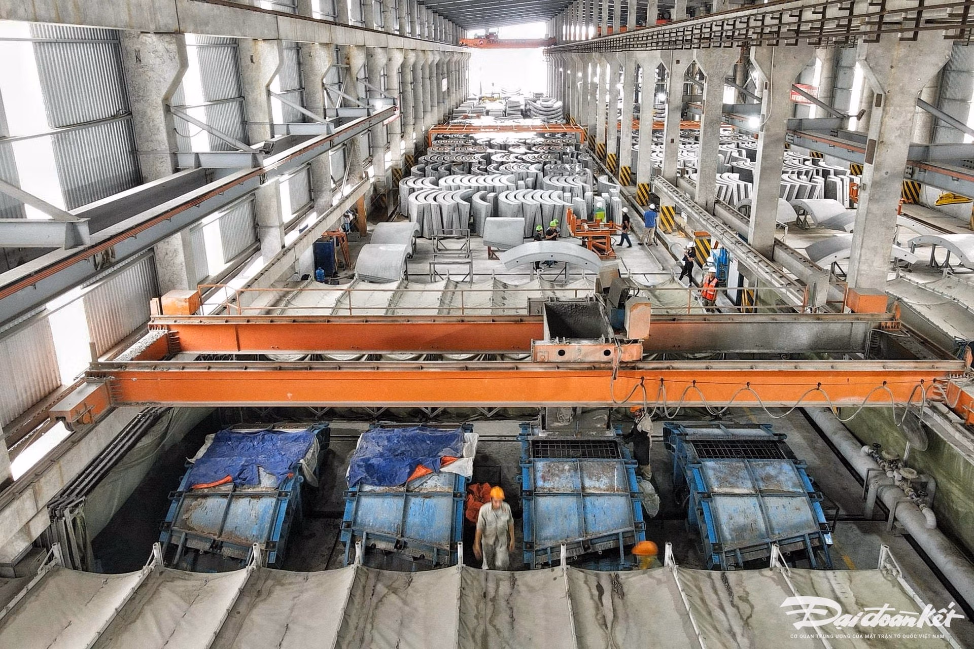 Để chuẩn bị cho sự kiện đào hầm đường sắt đô thị vào cuối tháng 7/2024, nhân công dự án đường sắt đô thị thí điểm TP Hà Nội, đoạn Nhổn - ga Hà Nội đang tăng cường vận chuyển những tấm bê tông vỏ hầm đặc biệt từ nhà máy tại Hà Nam đến ga S9 - Kim Mã.Những tấm bê tông vỏ hầm của tuyến đường sắt đô thị thí điểm TP Hà Nội, đoạn Nhổn - ga Hà Nội được sản xuất tại một nhà máy ở tỉnh Hà Nam.Quy trình sản xuất vỏ hầm tại nhà máy đã được phê duyệt trước khi tiến hành sản xuất, bao gồm 10 giai đoạn khác nhau nhằm đảm bảo các cấu kiện đạt chất lượng, đáp ứng yêu cầu kỹ thuật.Vòng vỏ hầm là loại vạn năng, bao gồm 6 miếng ghép lại có đường kính trong 5,7m, đường kính ngoài 6,3m, bề rộng vòng 1,5m và chiều dày vỏ gầm 0,3m. Mỗi đốt hầm có chiều dài 1,5m.Việc sản xuất các đốt hầm đúc sẵn được thực hiện qua các công đoạn khép kín. Đầu tiên, gia công cốt thép và kiểm tra tổ hợp cốt thép từng chi tiết nhỏ.Sử dụng loại thép riêng biệt B500B theo tiêu chuẩn châu Âu, với sai số kích thước cho quá trình thi công cốt thép là 5mm.Vật liệu cho cấp phối bê tông có yêu cầu rất cao. Đá và cát chỉ có một vài mỏ trong nước đáp ứng đủ, và một số vật liệu khác phải nhập khẩu từ nước ngoài (sợi, phụ gia,...). Chất lượng bê tông yêu cầu nghiêm ngặt, quy trình cân cốt liệu với sai số rất nhỏ (0,5% đến 2% tùy vật liệu), chu trình đổ bê tông khép kín...Sau đó, chuẩn bị ván khuôn, lắp đặt cốt thép và các phụ kiện rồi đổ bê tông vào khuôn.Tiếp theo, các tấm vỏ hầm sẽ được che phủ bằng các buồng kín để thực hiện công tác bảo dưỡng bằng hơi nước cho đến khi bê tông của tấm vỏ hầm đạt tới 60% cường độ nén quy định, tương đương với 30 MPa, trong khoảng từ 4 - 6 tiếng.Sau đó, các tấm vỏ hầm sẽ được chuyển đến khu vực bảo dưỡng nước trong vòng 7 ngày.Cuối cùng, sản phẩm sẽ được cẩu chuyển từ khu vực bảo dưỡng nước đến khu vực lưu trữ. Tại đây, sản phẩm được sơn lớp bảo vệ epoxy, đánh dấu từng đốt hầm để phục vụ cho việc lắp đặt thi công.Công đoạn cuối cùng tại nhà máy là sản phẩm sẽ được chuyển ra khu vực lưu kho, lắp gioăng EPDM, thanh dẫn và tấm đệm.Kỹ sư kiểm tra công đoạn cuối cùng của vỏ hầm trước khi xuất xưởng.Quy trình vận chuyển vỏ hầm trên quãng đường 71 km từ nhà máy ở tỉnh Hà Nam về ga S9 - Kim Mã gồm 5 giai đoạn. Thứ nhất là công tác chuẩn bị trước khi vận chuyển: các phân đoạn vỏ hầm được kiểm tra chất lượng kỹ lưỡng để đảm bảo không có lỗi kỹ thuật hoặc hư hỏng, sau đó đóng gói và bảo vệ bằng các vật liệu chống sốc và chống trầy xước.Thứ hai là kế hoạch vận chuyển: Dự án sử dụng 16 xe tô tô trailer làm phương tiện vận chuyển vỏ hầm, khung giờ vào ban đêm từ 21h đến 6h sáng hôm sau với tần suất vận chuyển tối đa là 16 xe/đêm.Tiếp đến là quy trình tải và vận chuyển: các phân đoạn vỏ hầm được cẩu lên phương tiện vận chuyển bằng các thiết bị nâng hạ chuyên dụng như cần cẩu hoặc xe nâng. Tải trọng hàng hóa lớn nhất cho mỗi xe là 33.25 tấn. Mỗi xe sẽ chở 1.5 vòng (ring) vỏ hầm, bao gồm 1 vòng đầy đủ và 0.5 vòng lẻ tương đương với 9 tấm vỏ hầm.Dỡ hàng và lưu trữ tại công trường: Khi đến công trường, các phân đoạn vỏ hầm được dỡ xuống bằng các thiết bị nâng hạ và đưa vào khu vực lưu trữ tạm thời. Các phân đoạn vỏ hầm được lưu trữ tại công trường theo cách sắp xếp gọn gàng và an toàn, sẵn sàng cho quá trình lắp đặt.Cuối cùng là kiểm tra và bảo trì sau vận chuyển: các phân đoạn vỏ hầm được kiểm tra lại sau khi vận chuyển để đảm bảo không bị hư hỏng trong quá trình di chuyển. Nếu phát hiện bất kỳ hư hỏng nào, các biện pháp sửa chữa và bảo trì sẽ được thực hiện ngay lập tức để đảm bảo chất lượng của vỏ hầm trước khi lắp đặt.Ông Nguyễn Bá Sơn - Phó Trưởng Ban Quản lý đường sắt đô thị Hà Nội cho biết: “Hiện nay các chuyên gia đang tiến hành kiểm tra lần cuối để tiến hành đào hầm, dự kiến ngày 30/7. Máy đào hầm TBM sẽ được khởi động và tiến hành đào hầm. Đối với các hộ dân bị ảnh hưởng, đến thời điểm hiện tại đã bắt đầu được di dời để máy khoan hầm hoạt động”.Về tiến độ của đoạn đi ngầm, ông Nguyễn Bá Sơn cho biết, thời gian khoan hầm sẽ diễn ra trong vòng 15 tháng. Dự án sử dụng 2 máy khoan hầm được sản suất từ nước Đức. Để giảm thiểu tác động áp lực, 2 máy sẽ khoan so le nhau. Mỗi ngày, sẽ khoan được 10m đến 12m.Theo ông Nguyễn Bá Sơn đường hầm được khoan 20m dưới lòng đất. Địa chất từng đoạn ngắn cũng đã được kiểm tra rất kỹ lưỡng. Các chuyên gia khẳng định tự tin có thể xử lý các tình huống cũng như chất lượng của đường hầm. Việc thi công khoan hầm sẽ được tiến 