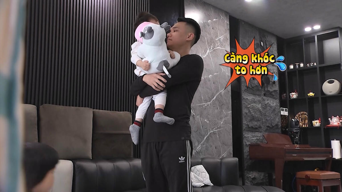 Cũng vì xô xát, bố Khắc Việt đành phải nghiêm khắc với hai con và rồi anh Dừa bật khóc vì vừa bị mất đồ chơi lại vừa bị mắng, bố Việt phải ôm ấp dỗ dành. Bà nội và mẹ còn chưa kịp ra khỏi nhà mà bố Việt đã chật vật vì hai con rồi đây.