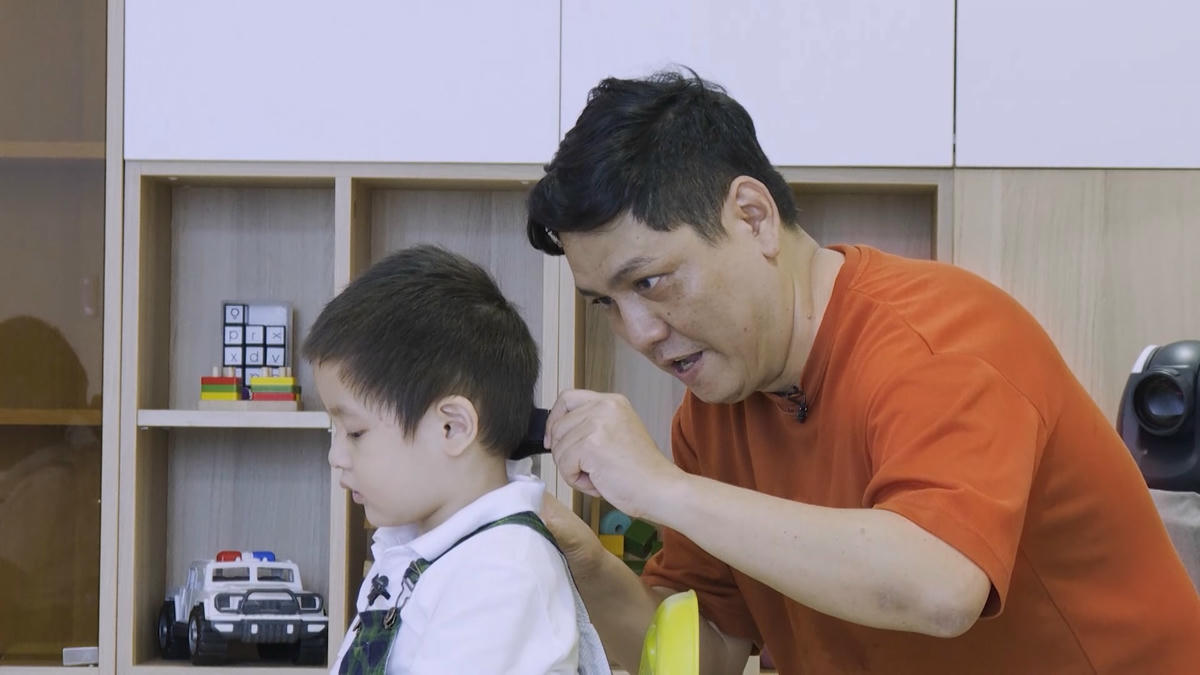 Trong lúc cắt tóc cho con, phần tóc bị rơi vào người khiến Tết khó chịu nhưng ba Thịnh lại không quá để ý. Thế rồi khi sự khó chịu nâng lên đỉnh điểm, bé Tết đã bật khóc. Tự tin con chơi cùng mình sẽ luôn vui cười nhưng rồi ba Thịnh đã phải đối mặt với thử thách đầu tiên: dỗ con hết khóc khi con đang khó chịu trong người.