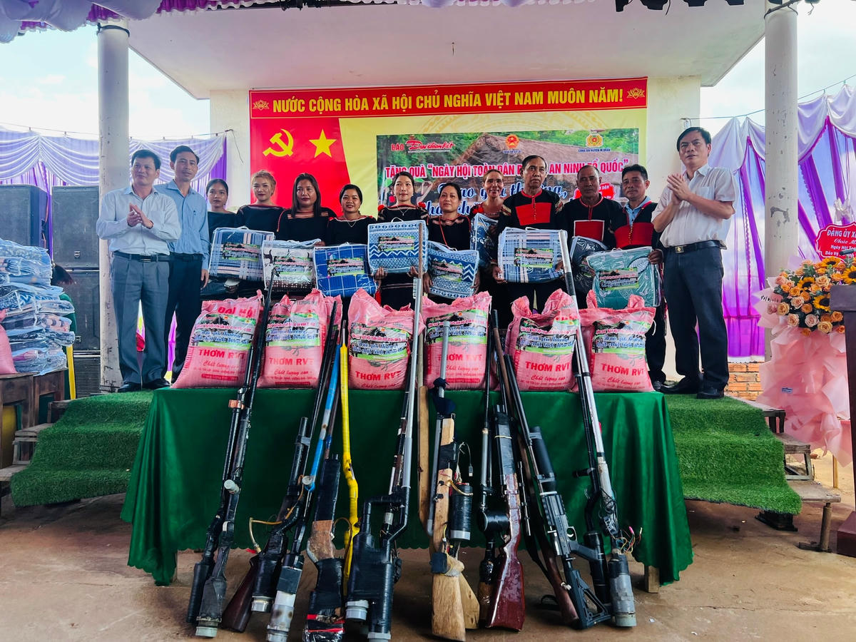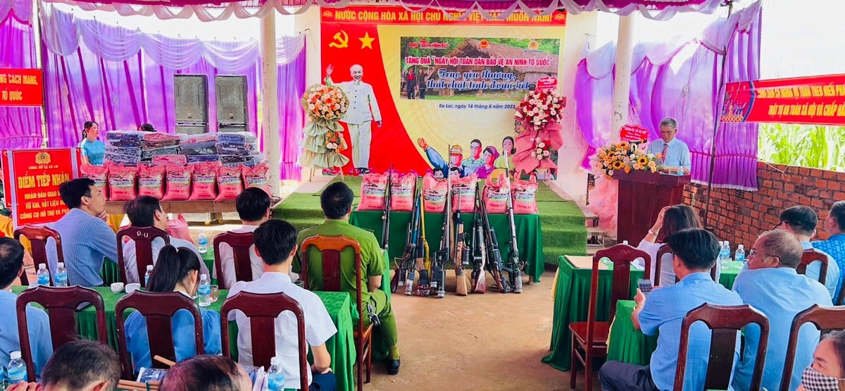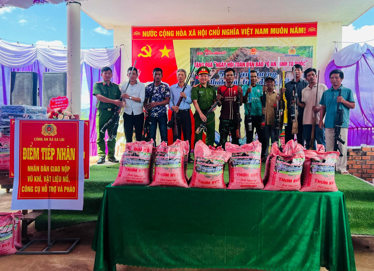 Tại Ngày hội “Toàn dân bảo vệ ANTQ”, ông Võ Đức Nhân – Chủ tịch UBND xã Ea Lai, Trưởng Ban Chỉ đạo PCTP, TNXH và xây dựng phong trào Toàn dân bảo vệ ANTQ đã kêu gọi bà con nhân dân giao nộp vũ khí vật liệu nổ, công cụ hỗ trợ... Hưởng ứng lời kêu gọi của Trưởng Ban Chỉ đạo PCTP, TNXH và xây dựng phong trào Toàn dân bảo vệ ANTQ, trong Ngày hội bà con nhân dân trên địa bàn xã Ea Lai đã tự nguyện giao nộp 7 khẩu súng tự chế các loại. Tính từ ngày 19/7 đến nay Công an xã Ea Lai đã thu 30 khẩu súng tự chế; 1 quả đạn M79; 2 túi kíp nổ; 2 viên đạn AK; 1 kg đạn bi…